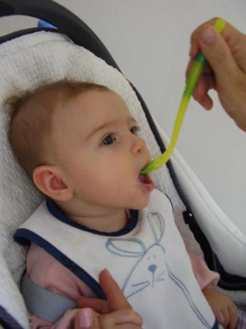 иска си цицата. Така успях да набутам около една чаена лъжичка, а си бях сипала в купичката 2. Реших да не го тормозя повече, че да не го откажа съвсем и му дадох цица и той доволен и щастлив, дори пускаше отначало зърното и ми се хили. Сладура на мама! Утре сме на ваксина. Последната ДТК.