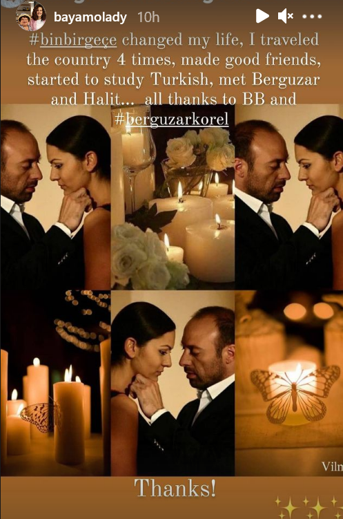 От Силвия Лопеz - "1001 нощ" промени моя живот, пътувах до страната четири пъти, намерих добри приятели, започнах да уча турски, срещнах Бергюзар и Халит... Всичко това благодарение на "1001 нощ" и Бергюзар Корел. Благодаря!"