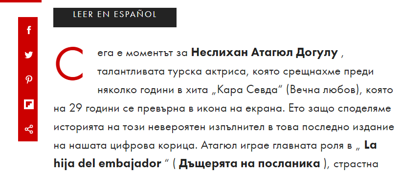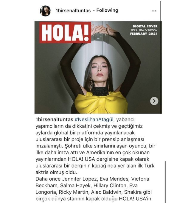 Пише също, че Несли е първата турска актриса, украсила корицата на едно най-четените списания в Америка.