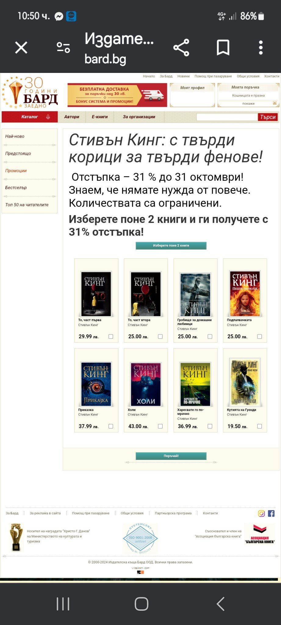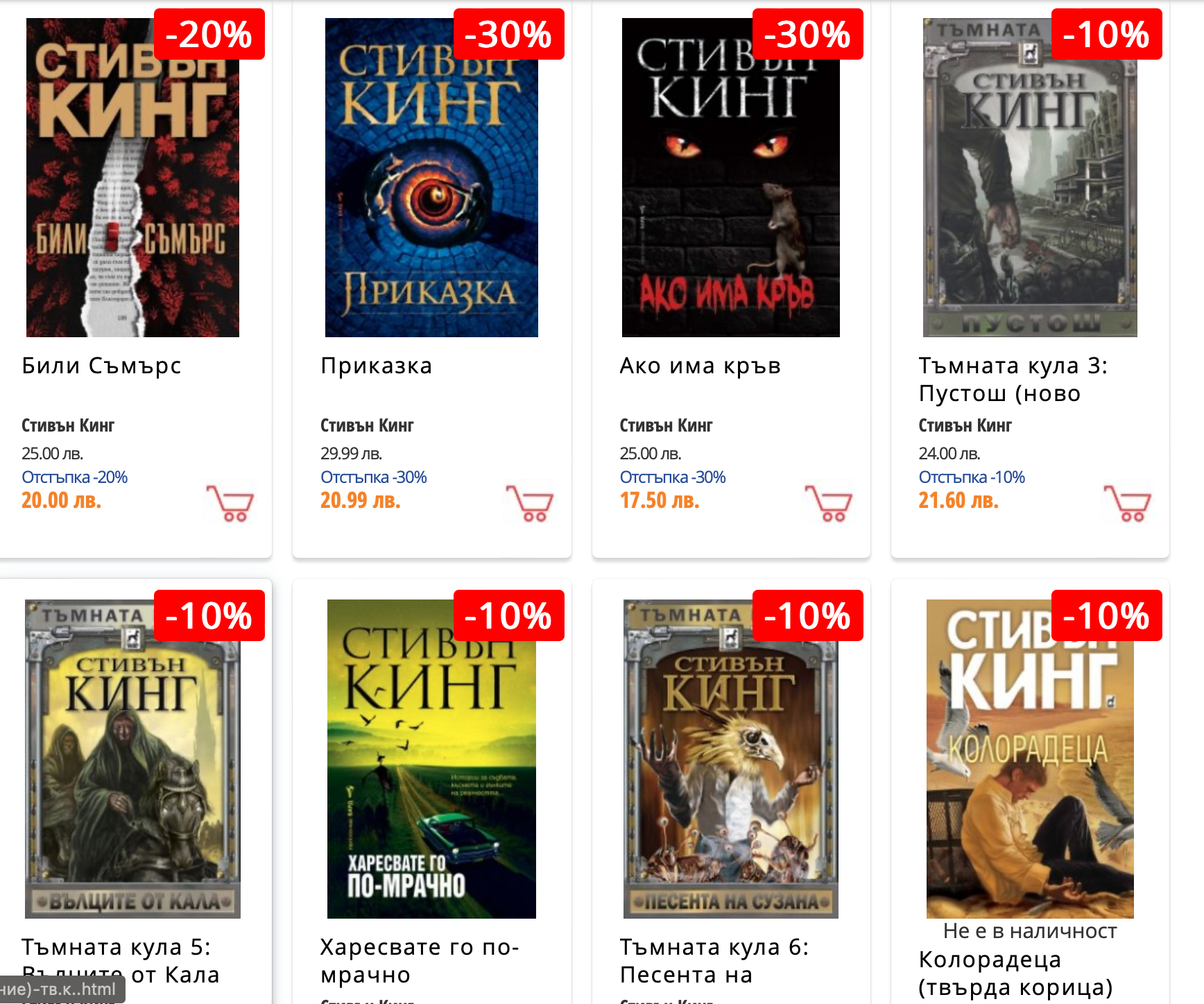 Хеликон имат намаления онлайн на някои книги на Стивън Кинг.
