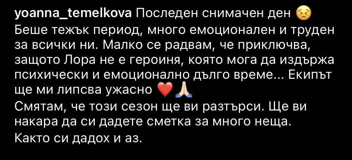 Бебе този сезон няма да има, Йоанна е приключила със снимките, има и сторита в профила ѝ, няма корем.