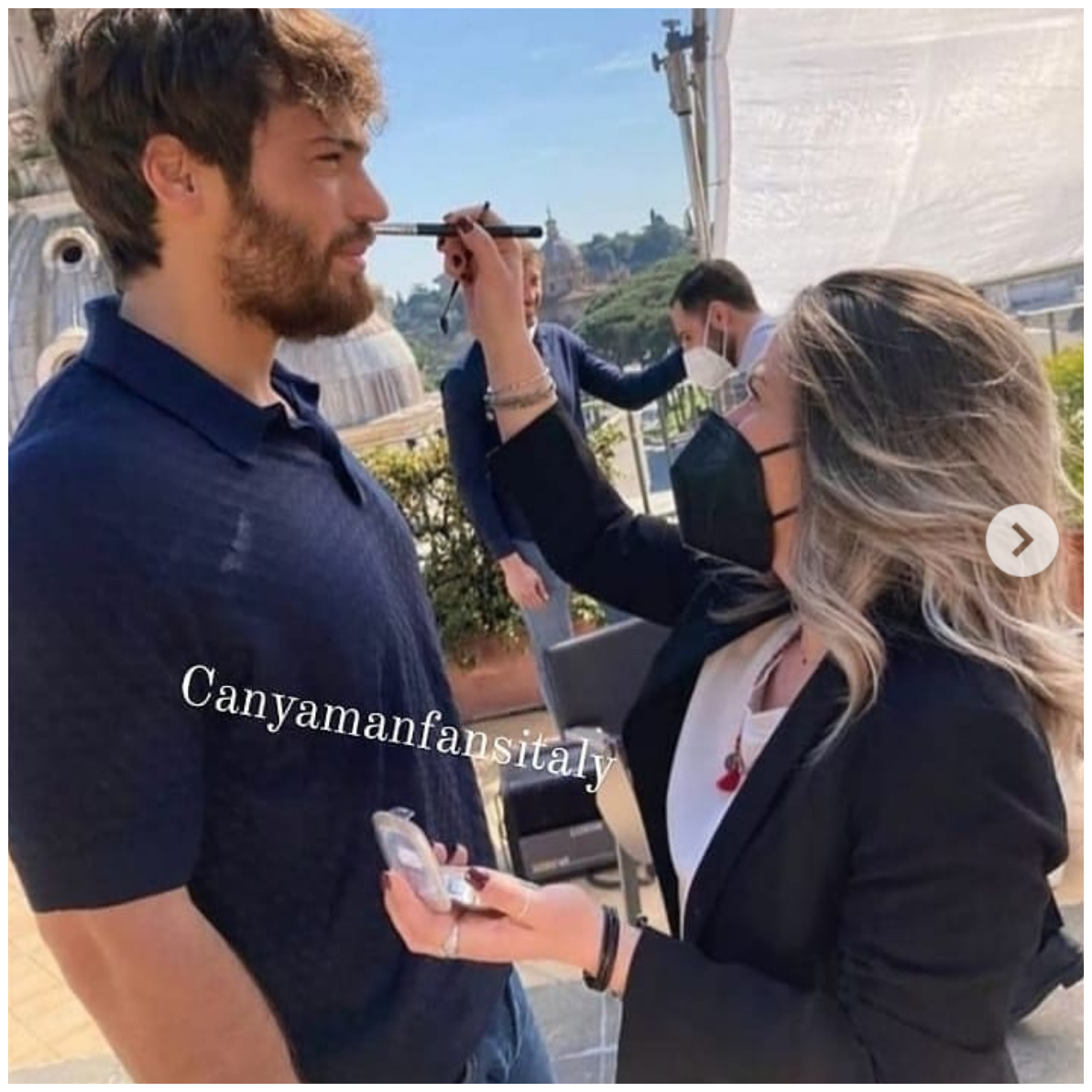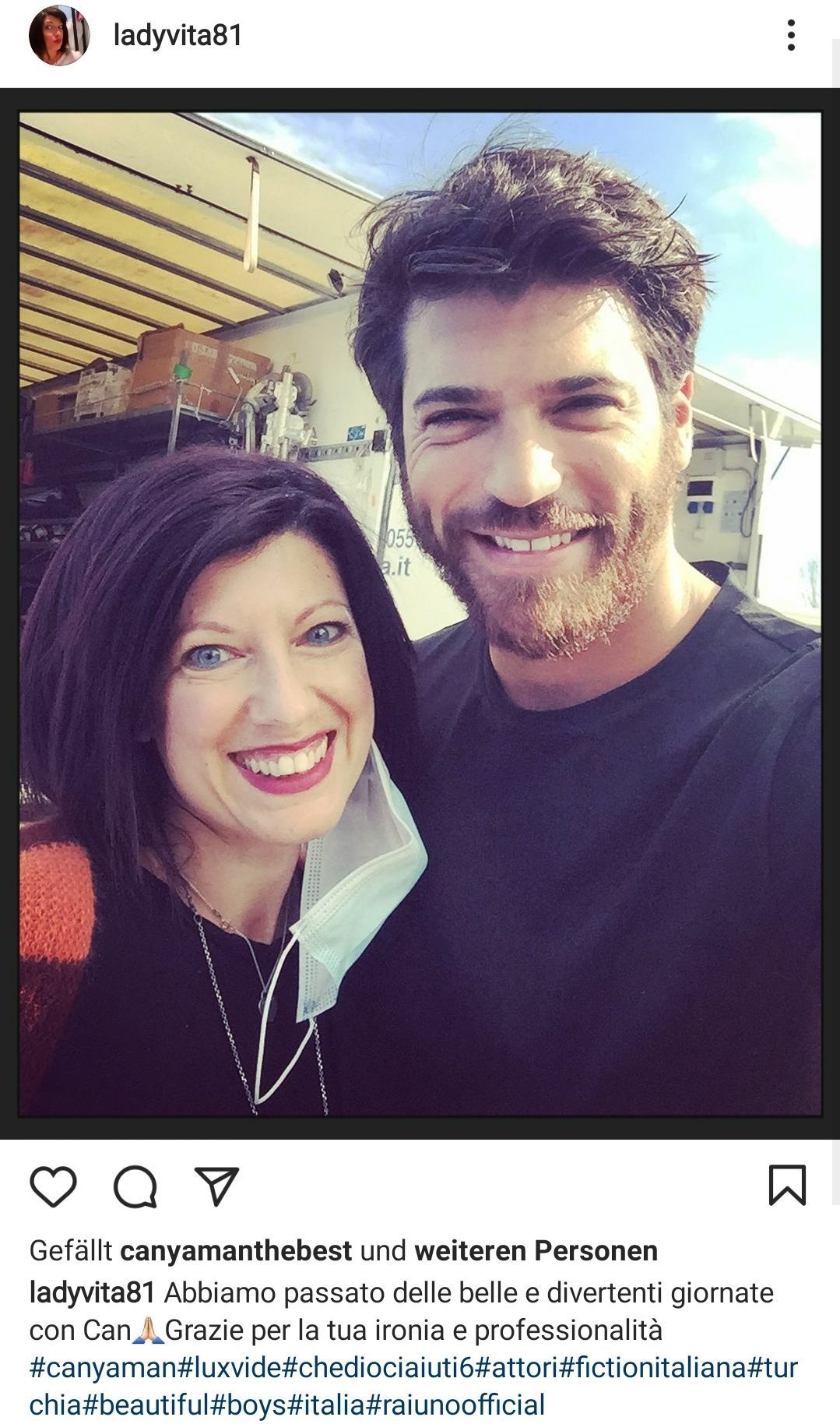 Джан с актрисата Валерия Фабрици, която играе една от монахините. Написала е под снимката: