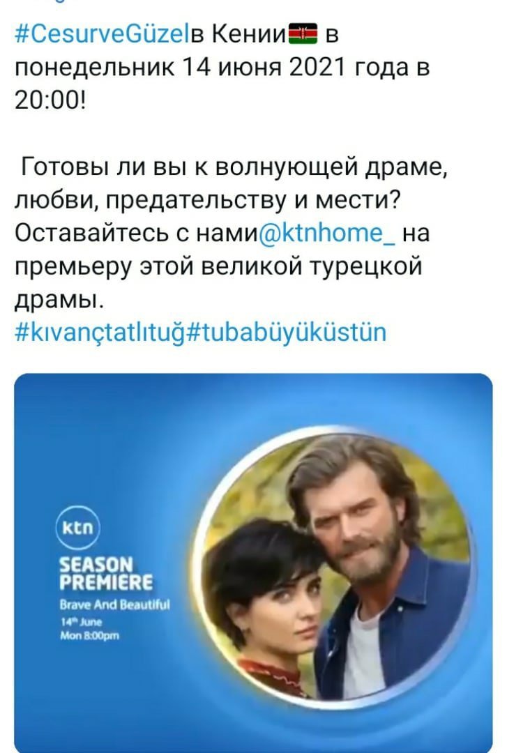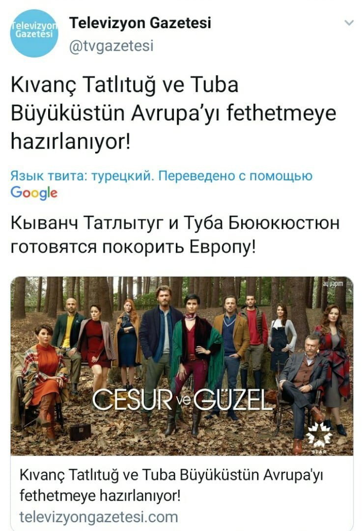 Стало известно, что новый турецкий сериал будет транслироваться в другой европейской стране. В соответствии с этим в ближайшее время в Италии выйдет в эфир телесериал Cesur Ve Güzel с Кыванчем Татлытугом и Тубой Бюйюкюстюн в главных ролях.