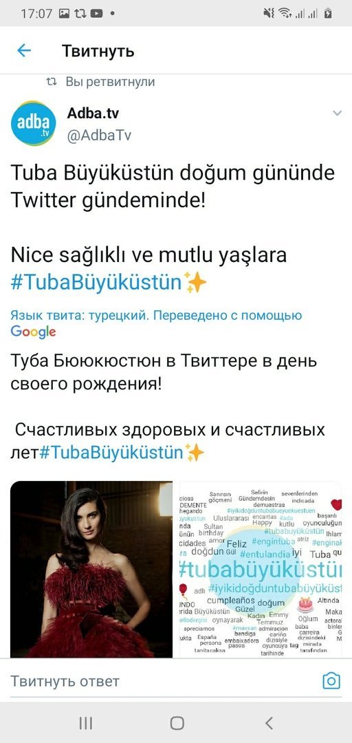 Дуйгу Абак добавила в инстастори #TubaBüyüküstün #СДнемРождения