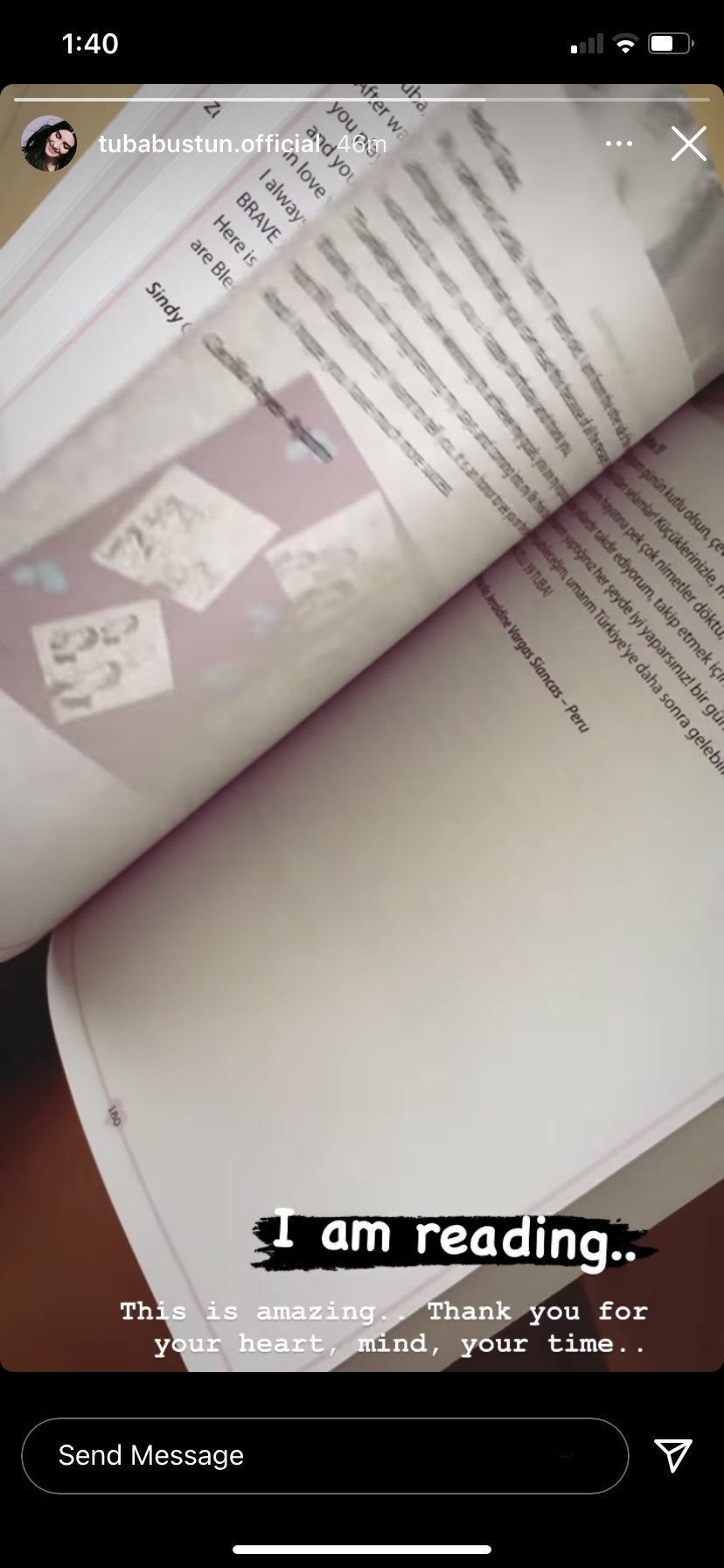 В День рождения Тубы Бюйюкюстюн (  5 июля) поклонники подготовили для любимой актрисы книгу, состоящую из посланий ко дню рождения с любовью со всего мира, и подарили ее Тубе Бюйюкюстюн. В книге, которая включает 398 страниц, поклонники Tuba Büyüküstün со всего мира, от Америки до Европы, от Латинской Америки до Ближнего Востока, от Балкан до арабской географии, прислали сообщения. Туба Бюйюкюстюн, получившая книгу в день своего рождения, поблагодарила ее, поделившись фразой «Вы всегда лишаете меня дара речи» в своем аккаунте в Instagram. Туба Бюйюкюстюн, написавшая для своих поклонников новый пост о том, что она начала читать книгу 14 июля, выразила свои чувства так: «Я читаю. Это потрясающе. Спасибо за ваше сердце, за ваши пожелания и за ваше время».