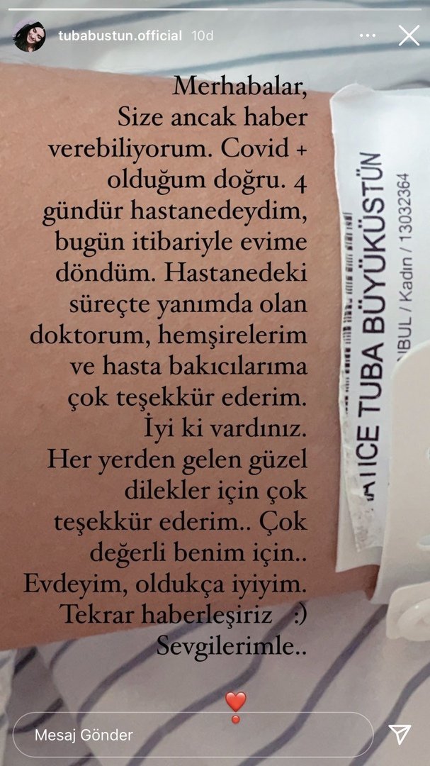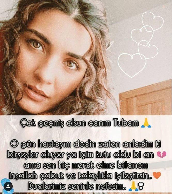 Здравствуйте! Я только сейчас могу сообщить вам новость. Это правда, я заболела на коронавирус. Я лежала в больнице 4 дня, и с сегодняшнего дня вернулась домой. Я хотела бы поблагодарить своего врача, медсестер и весь персонал, которые были со мной во время этого процесса в больнице. Хорошо, что вы есть.Спасибо за ваши прекрасные пожелания, которые приходят из разных уголков. Это очень ценно для меня .. Я дома, чувствую себя намного лучше. Мы снова будем общаться:) С любовью..