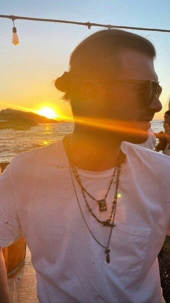 Новата снимка на Къванч в гръб носи някакво послание, но не успях да го разгадая... Виж тази с делфините изглежда много добре - явно е свързана с проекта му.