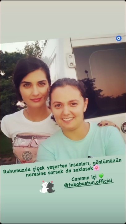 Момичето на снимката с Туба води фенклуба й.С нея беше съгласувана нашата среща с Туба,когато бяхме на ексурзия през 2014 г.,по време на снимките на ''Кара пара ашк/Черни пари и любов'' с Енгин.Тя ни посрещна и заведе до караваната,където почиваше Туба и чакаше да я извикат за снимки.