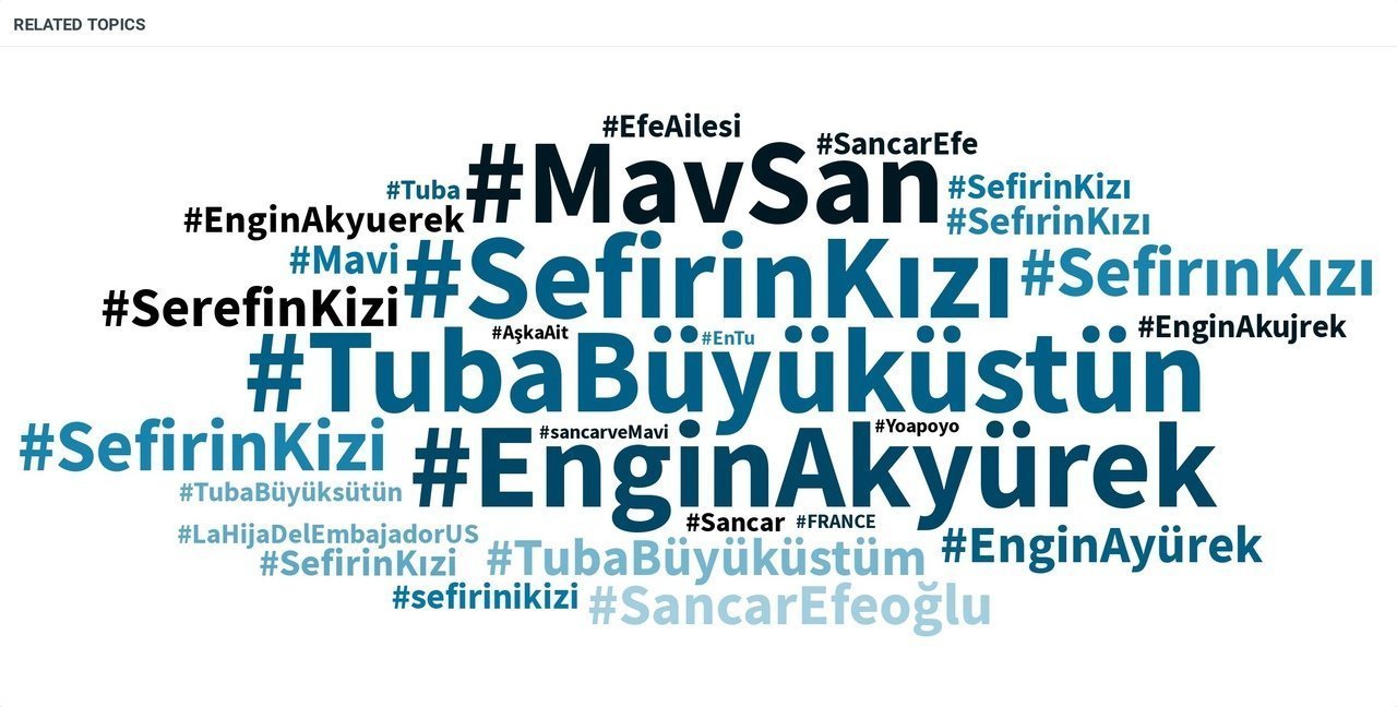 в много страни са били в тренда ...Туба/Мави....Енгин/Санджар...както и името на сериала
