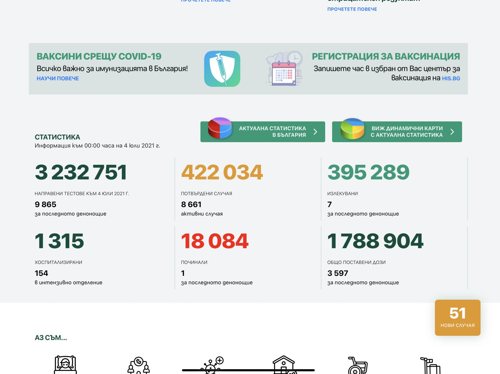 Само 1 починал. 51 нови случая. Новите случаи стигнаха и задържаха едно много ниско ниво.