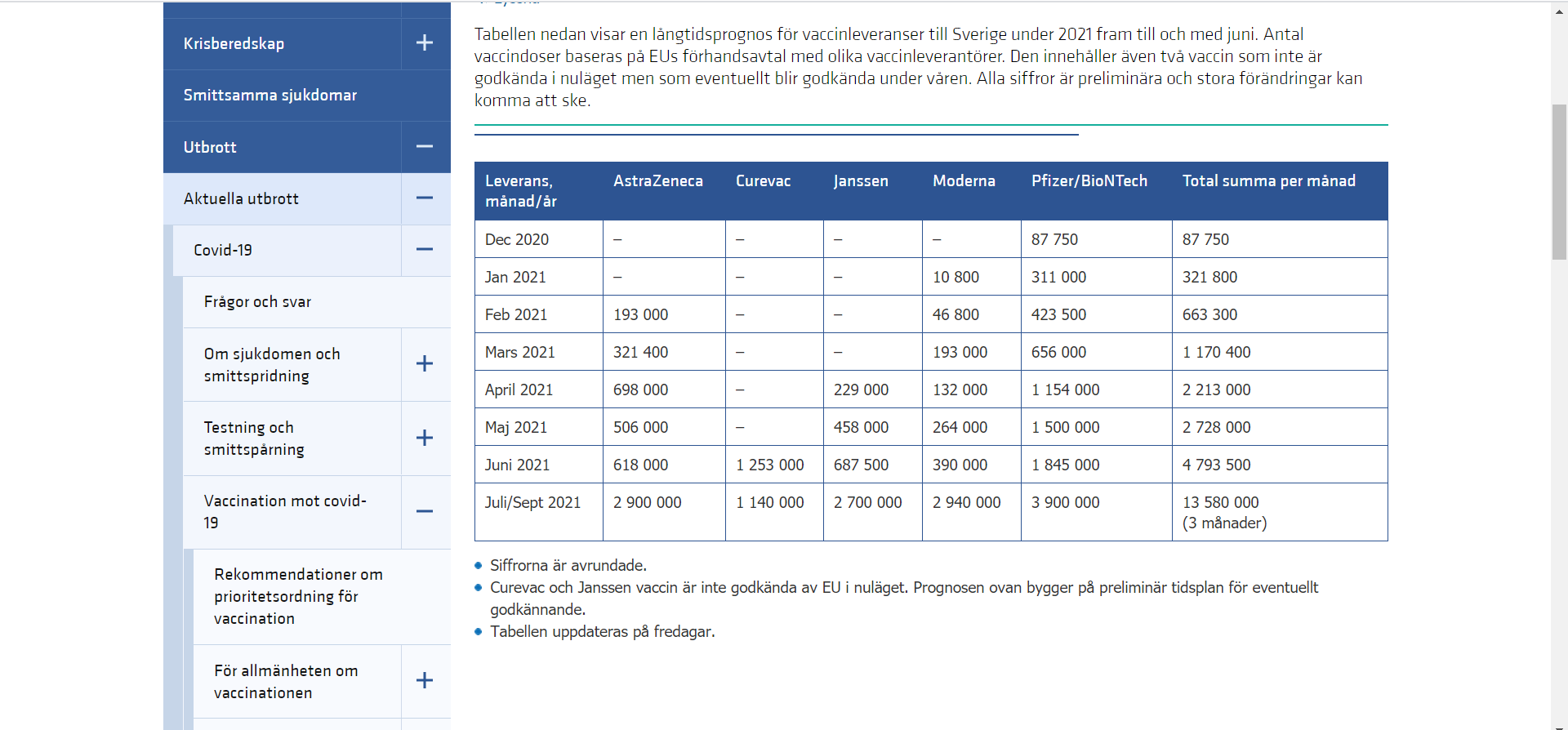 https://www.folkhalsomyndigheten.se/smittskydd-beredskap/utbrott … vaccinleveranser/