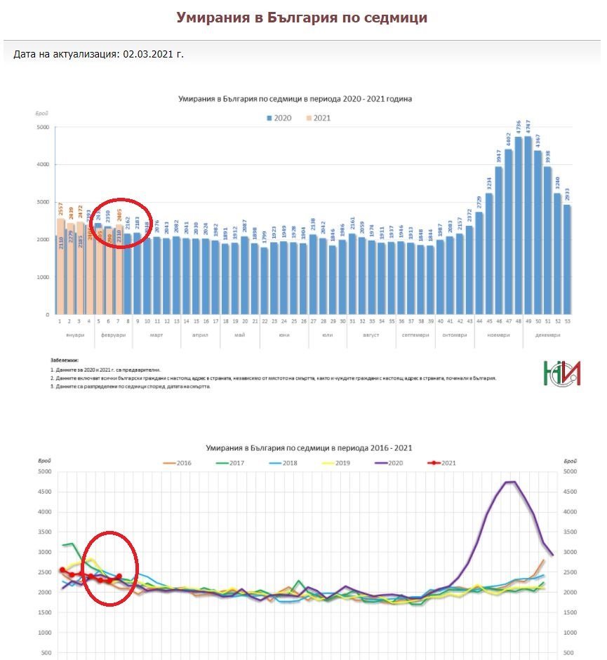 6. свръхсмъртност сред населението (надвишена смъртност по всички причини / excess all-cause mortality) [НСИ не публикува ускорена разбивка по МКБ класификация, както правят други държави с епидемия]