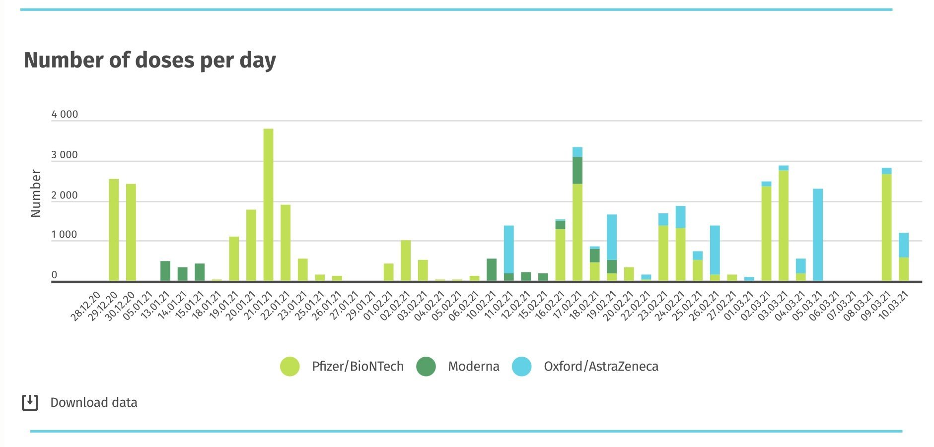 Не знам как е било в другите страни и колко бързо са получили следващата доставка от Файзер, и дали веднага са почнали да ваксинират възрастни или са я разпределили към други приоритетни групи, примерно, но при нас след ваксинацията от първата доставка края на декември, следващата ваксинация с Файзер започва чак на 18.01. (Графиката долу) Бяха проучени вече смъртните случаи, включително и тук в Исландия.