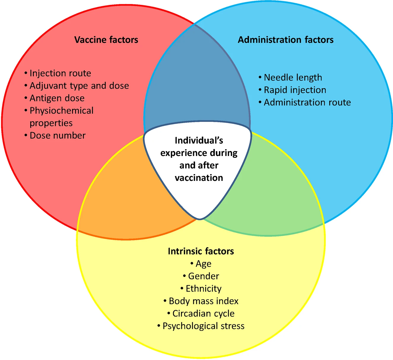 Фактори, които могат да поялият по един или друг начин на реактогеността на ваксината и които включват възраст, пол, раса, телесна маса, здравословно състояние, съществуващ имунитет и начин на постояване на ваксината.