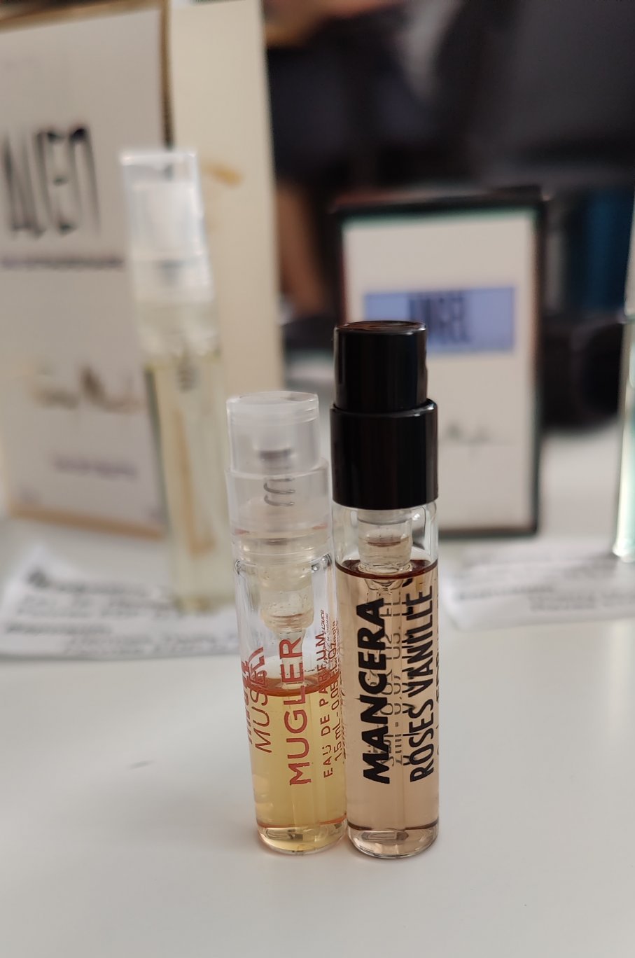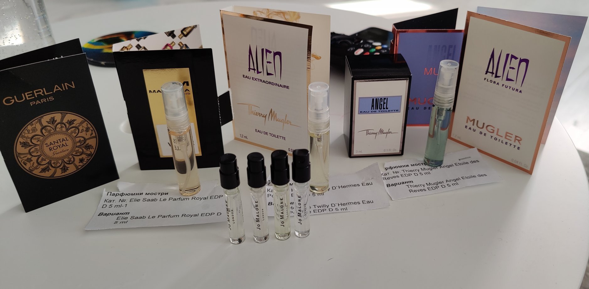 Аз последно време поръчвам доста мостри. Днес ми пристигнаха тези от parfumi - shop, но съм леко разочарована, защото Angel Muse EDP и Angel EDT са по - малко от половината. Предполагам, че са пръскани и все пак са ми ги пратили. Само мостри са, но все пак чувството е неприятно.