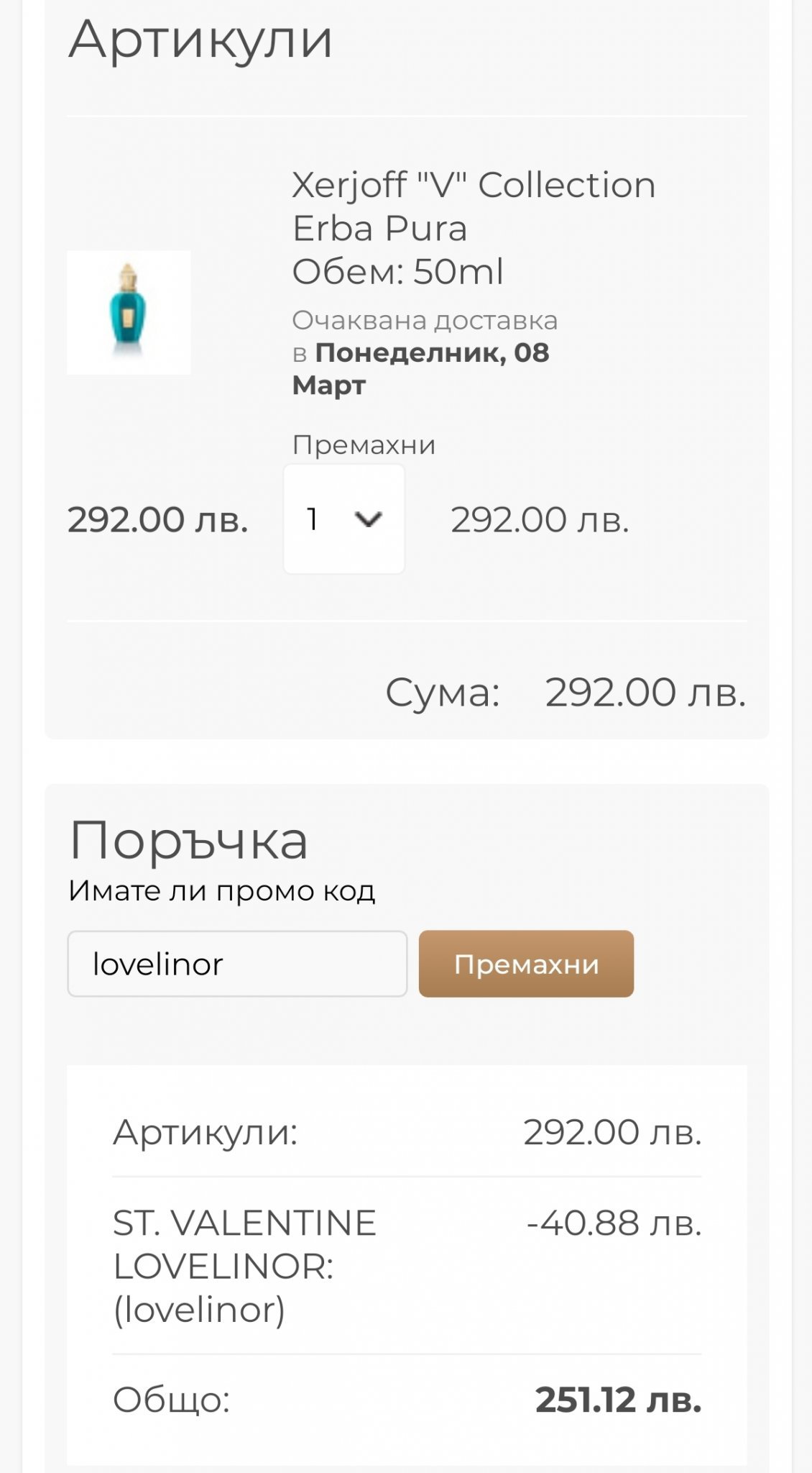 Доволна съм. От парфимо взех 2 тестера на dkny за по 20лв./50мл., един унисекс комплект и един парфюм на Фере.