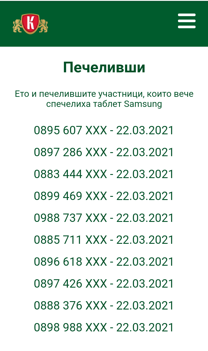 Печелившите от Каменица за днес.