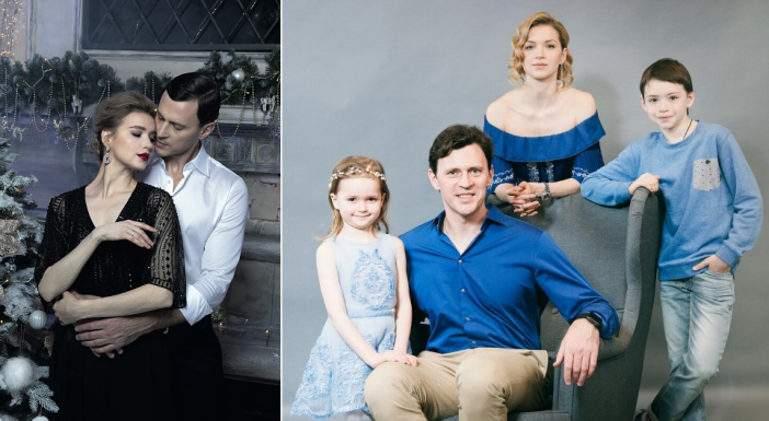 ... с партньорката в живота - балерината Наталия Сомова и с децата