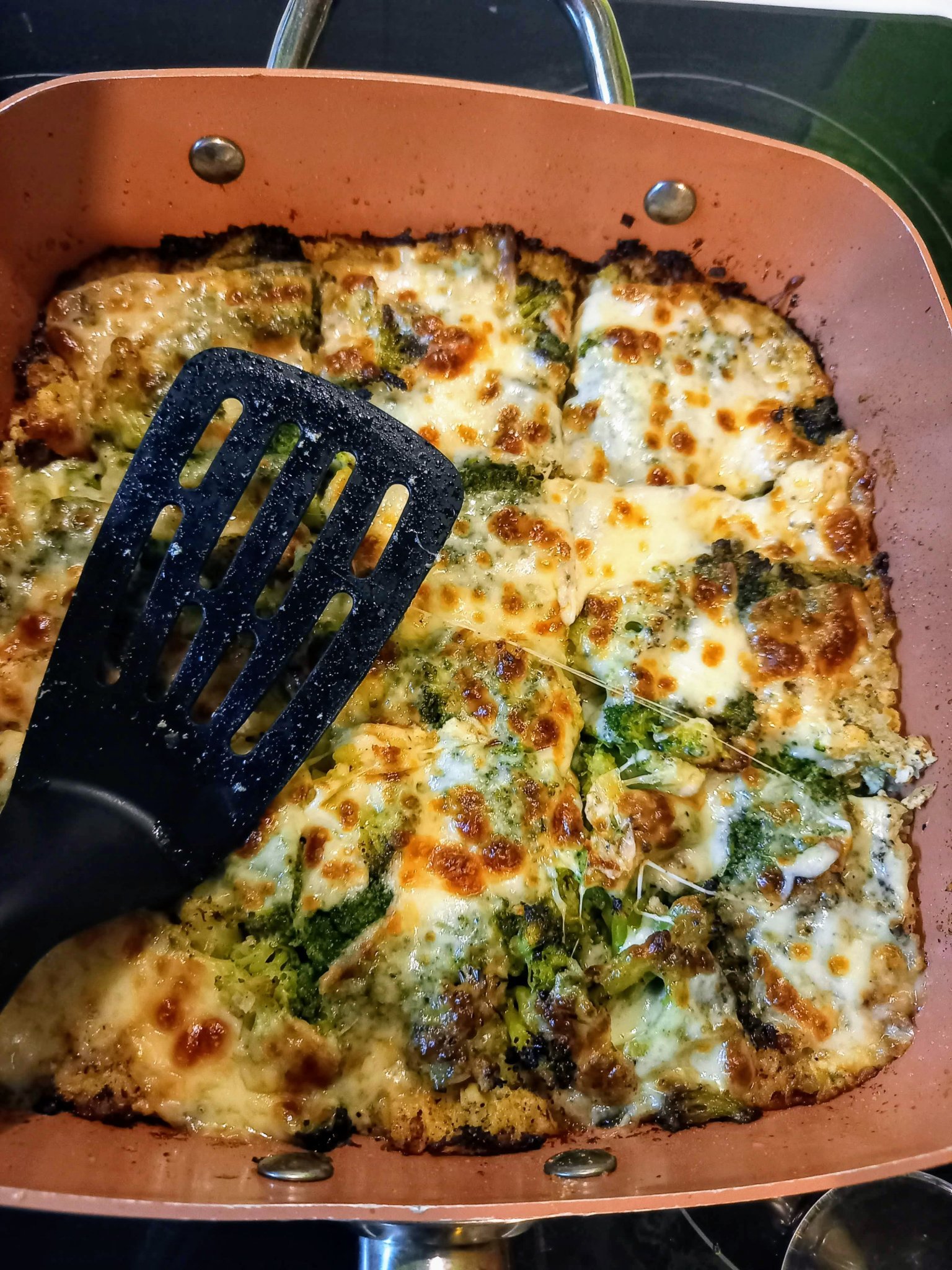 Днес запеканка пилешко филе и броколи. Обичам да гледам как се топи краве масълцето върху брокола. После го захлюпвам с кашкавал и става муцка!