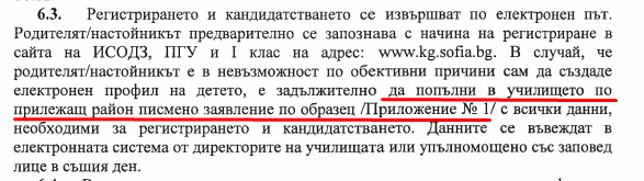 В системата е записано, че родителят отива в прилежащото училище и подава там докуемнти.