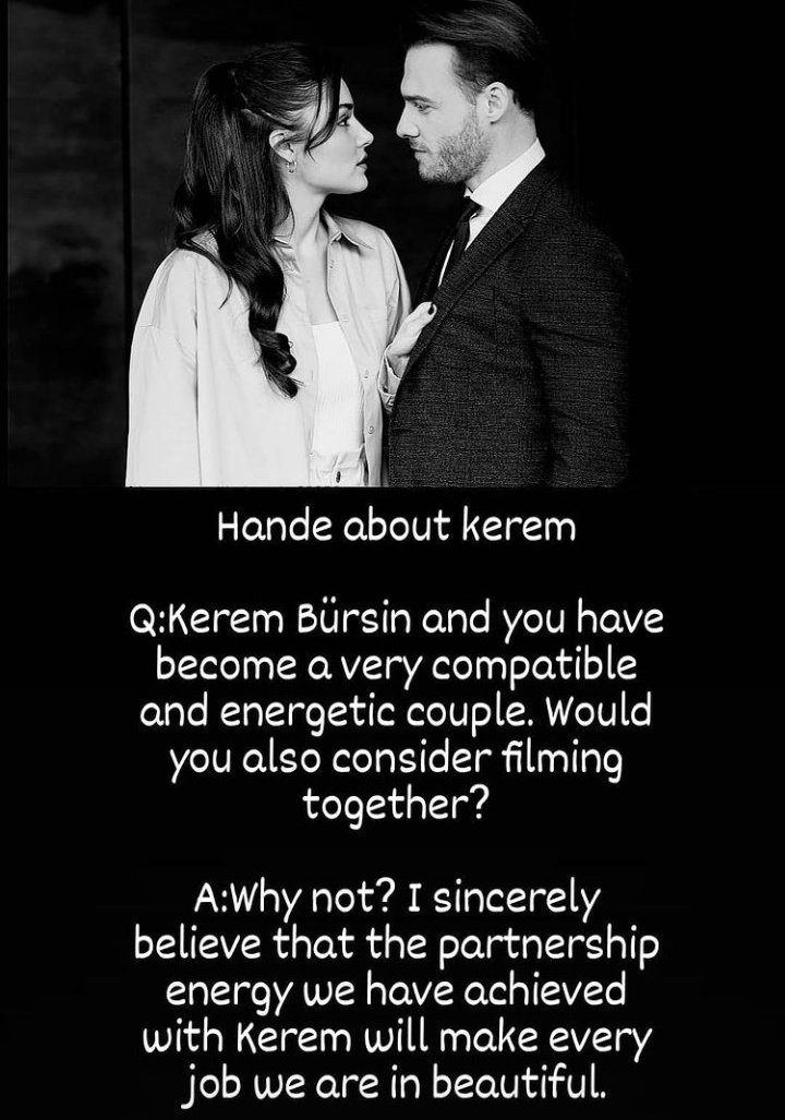 Отговорът на Ханде: Защо не? Наистина вярвам, че тази енергия, която постигнахме с Керем ще направи всяка работа прекрасна!