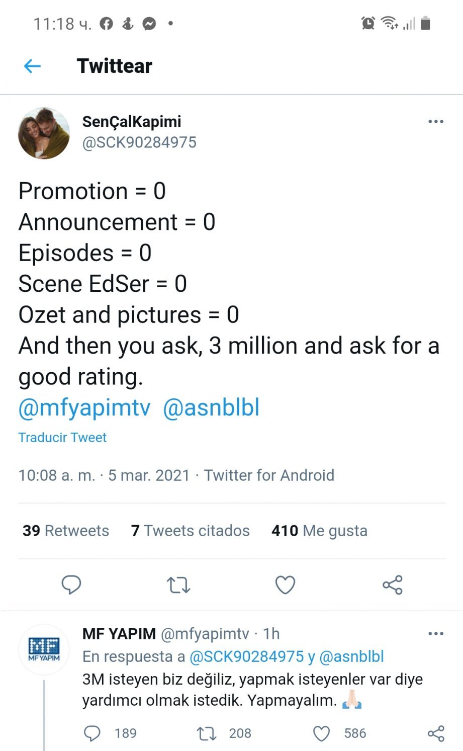 Още не съм гледала последния епизод , но ми стана много мъчно, четейки вашите коментари. Не искам да имаме още една такава отчаяна седмица , оплаквайки епизода, оплаквайки фрагманите, чета всички мнения и те са напълно обосновани, вие не сте виновни за нищо , не ми разбирайте грешно , просто искам да усещам предишното вълнение , четейки вашите постове , усмивката да не слиза от лицето ми докато чета, това искам, но за да се случи отново това май няколко сценаристи трябва да претърпят самолетна катастрофа