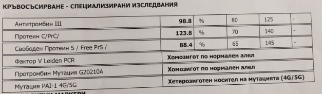 Момичета, днес ми излезнаха резултатите за тромбофилия, и пише мутация 4G/4G и хомозодно състояние. Моля да ми разясните какво значи. Бременна съм в 6г.с!