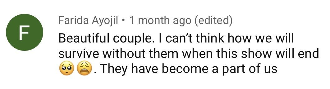 “Красива двойка. Не ми се мисли как ще оцелеем, когато сериалът приключи. Те се превърнаха в част от нас.”