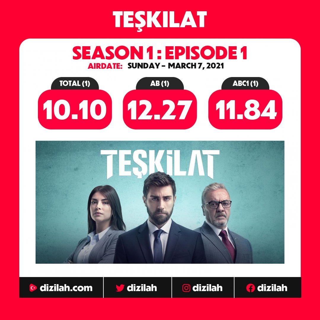 Вчера е започнал нов сериал Teşkilat, който е тръгнал отлично според Dizilah и рейтингът на всички други е паднал. Оставям в скрит текст резултатите на Kefaret и Teşkilat.