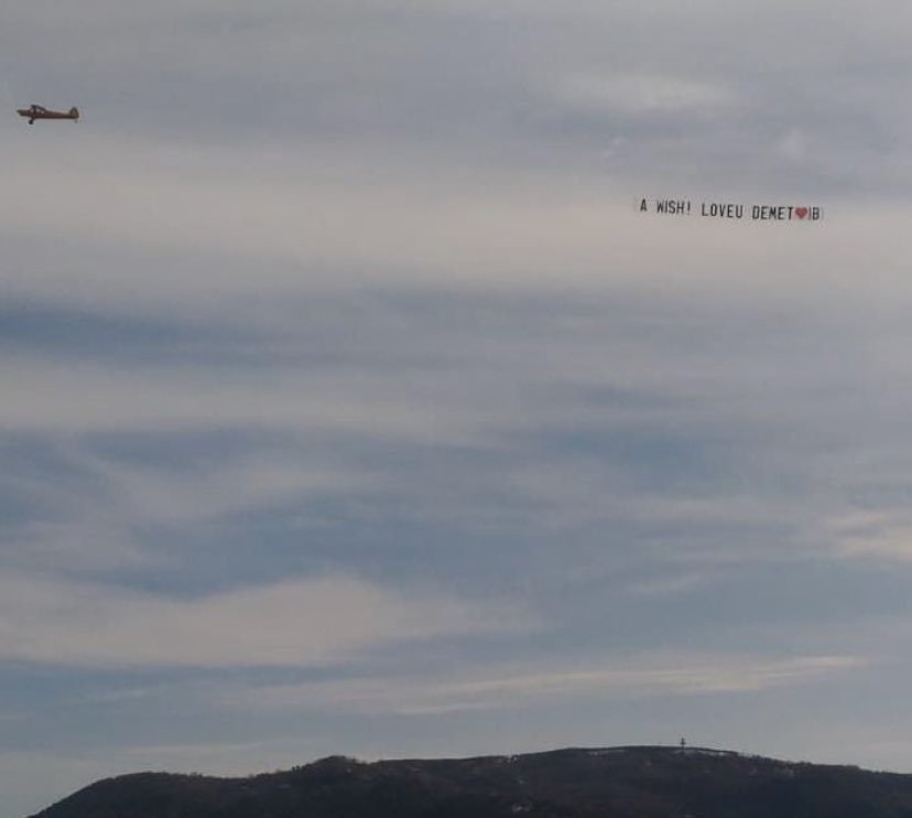 Италианските фенове на Демет са ѝ направили въздушно послание като това, с което Джан предложи брак на Дилетта... не знам колко е удачно... Rolling Eyes "Пожелние. Обичаме те Демет Heart IB*"