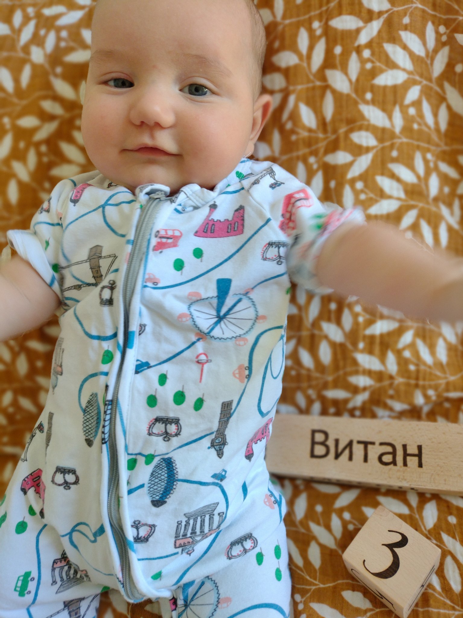 На 29.05 ще стане на 4 месеца. Обръща се от корем по гръб, от гръб по корем, хваща играчки, лапа ръце, посяга към предмет, който му е интересен, "пълзи" като червейче понякога и успява да се придвижи с около два-три педи.
