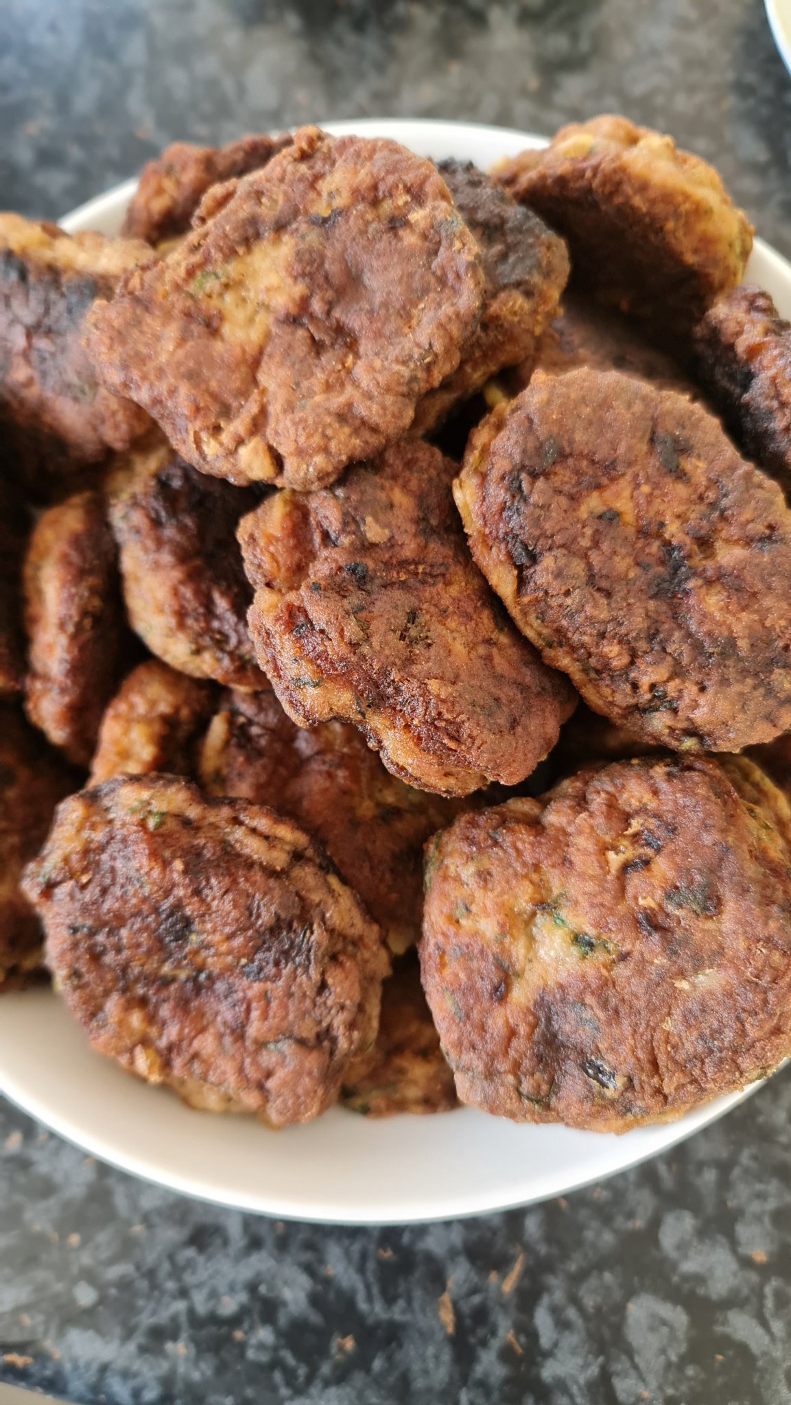 Нарязвам всичко върху кухненската дъска, без да се старая да е на ситно. Добавям подправки (сол, черен пипер), две яйца и пармезан/чедър - настъргани. В рецептата, която някога съм видяла е пармезан, на нас ни харесват с чедър. Важно ми е да са добре изцедени броколите, за да не се налага да добавям брашно. Това е. Пак в рецептата са пържени, но аз от мързел открих, че печени са по-добри. Въобще май никакви зеленчукови кюфтета не пържа вече.