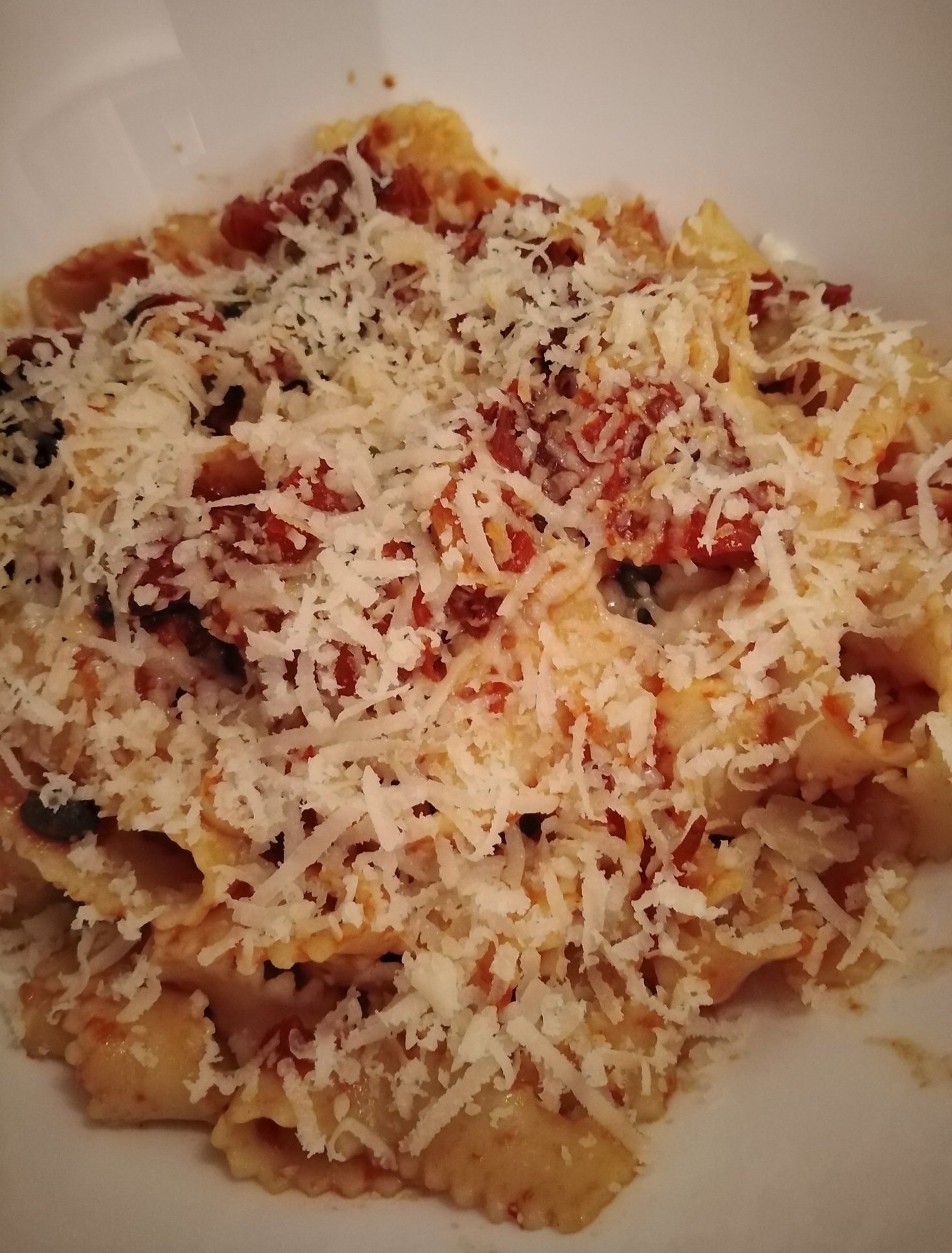 Днес не ме мързя и направих на милото обещаните лапачинки Hands Thumbsup Един час в кухнята Rolling Eyes обаче хванах ММ да реже, бърка и рендосва докато аз обръщах палачинки и мина неусетно. Вътре плънката е филенце пуешки гърди и зелен лук, отгоре два вида кашкавал и бешамел с малко горчица. Голямо готвене, ама и голямо лапане падна Smiley Тая манджа я свикнах преди много години когато почнаха да я правят по заведенията, в ЦУМ имаше едно много хубаво ресторантче-кафененце с едни високи масички ако не бъркам, правеха ги хубаво, май с шунка беше. Отдавна не бях правила вкъщи, следващият път с шунка ще ги направя.