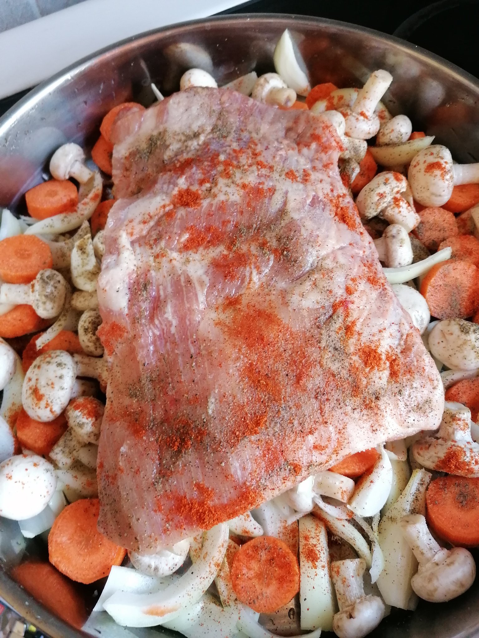 Започнах 90 дневната диета и нямам много за показване, днес съм на витамини, за утре сложих свински гърди с гъби, моркови и лук.