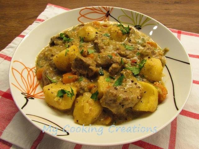 Телешка яхния с картофи и сметана