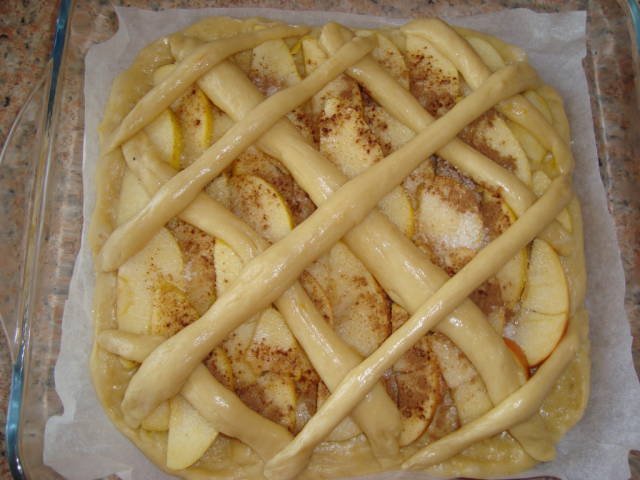 Определих се с продукцията за събота. Ще направя традиционен, фруктов, шарен асеновски козунак и кулич, разбира се. Като част от тестото ще е за кифли и може би един пирог, който много обичам, понякога го правя и с ябълки, захар и канела: