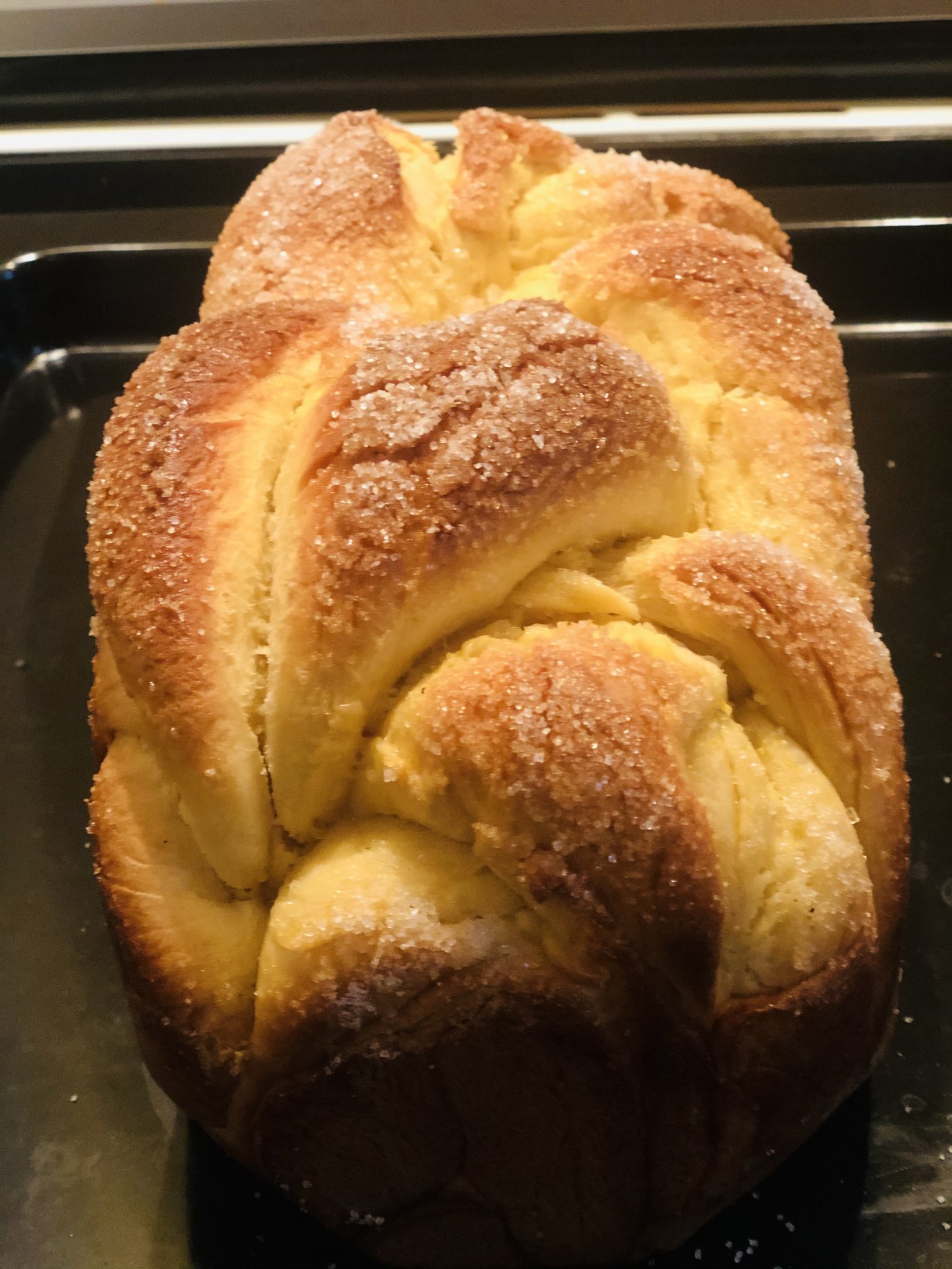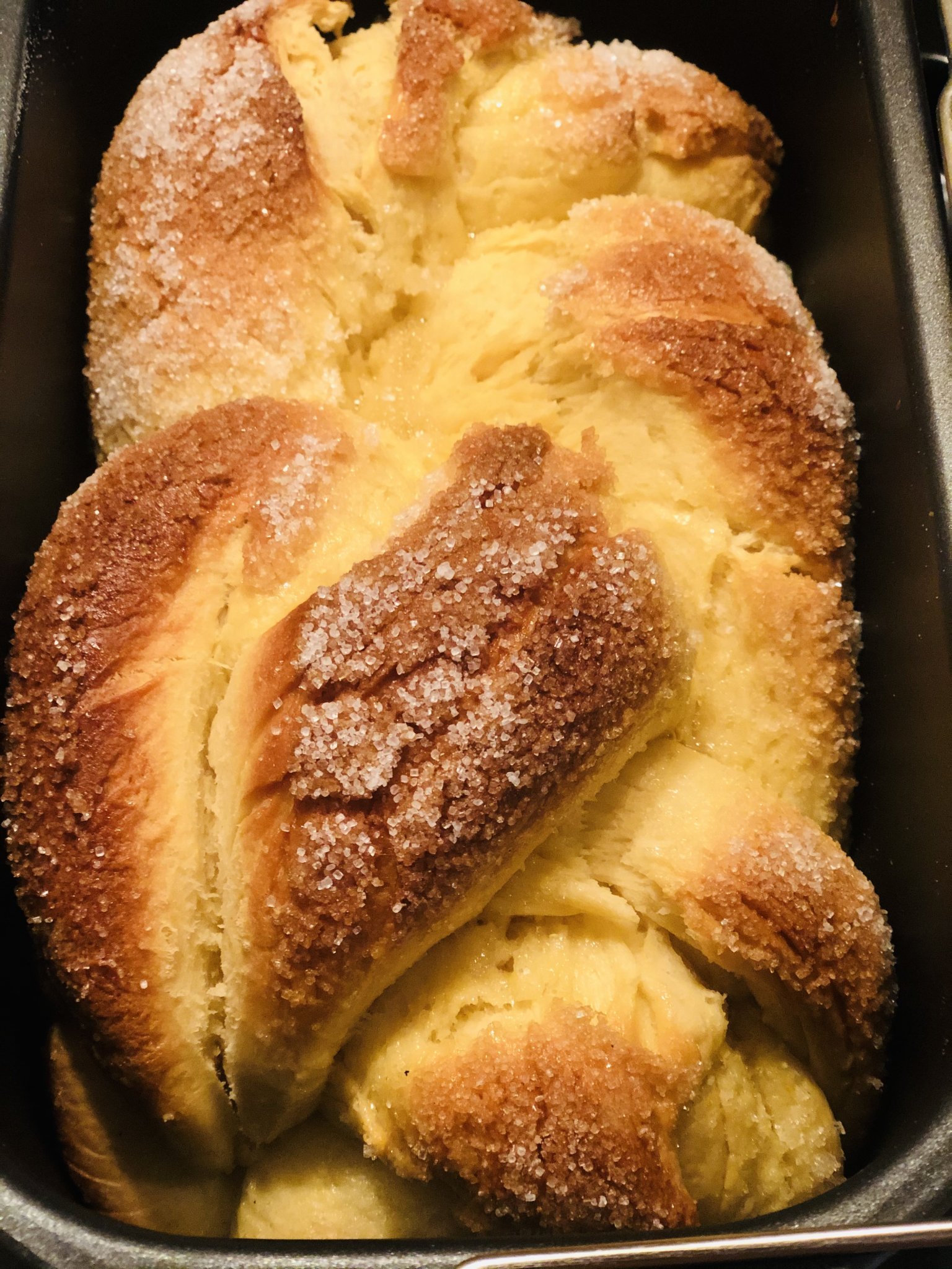 Здравейте, извинявам се за нахлуването, но вчера правих козунака на Морена с тънка коричка. Всичко беше прекрасно и на вид го докарах перфектен - ще кача снимки. Месих и втасва няколко пъти в хлебопекарната, накрая сплетох и втаса на изключена фурна но във формичката на хлебопекарната - около час и половина. След това загрях фурната до 180 пекох така 10 мин и намалих на 160 за още 20. Като го извадих изглеждаше перфектен, изчаках около 10-15 мин и извадих от формата. При което много бързахме да го опитаме и като го разрязах малко под коричката си беше тесто, а в останалата част супер, даже и конци си имаше, ама това тесто защо 🧐