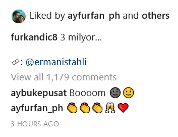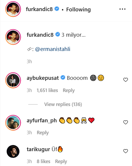 Под тези снимки на Фуркан има близо 1200 коментара, Айбюке също се е включила и е получила 1651 лайкчета Joy