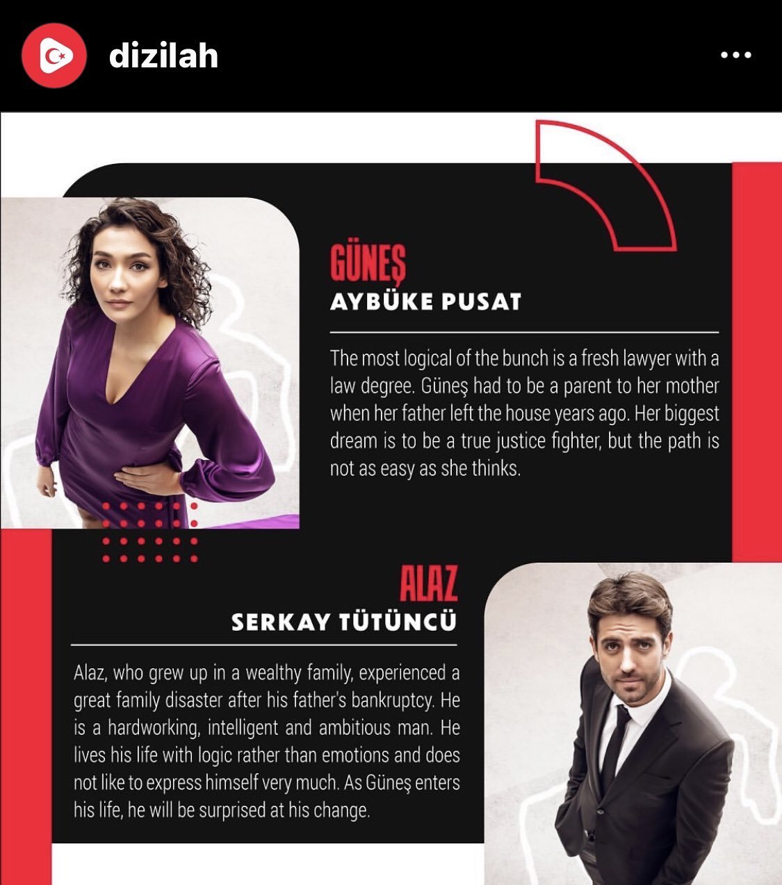 От сайта Dizizlah. Представят героите на Айбюке и Серкан.