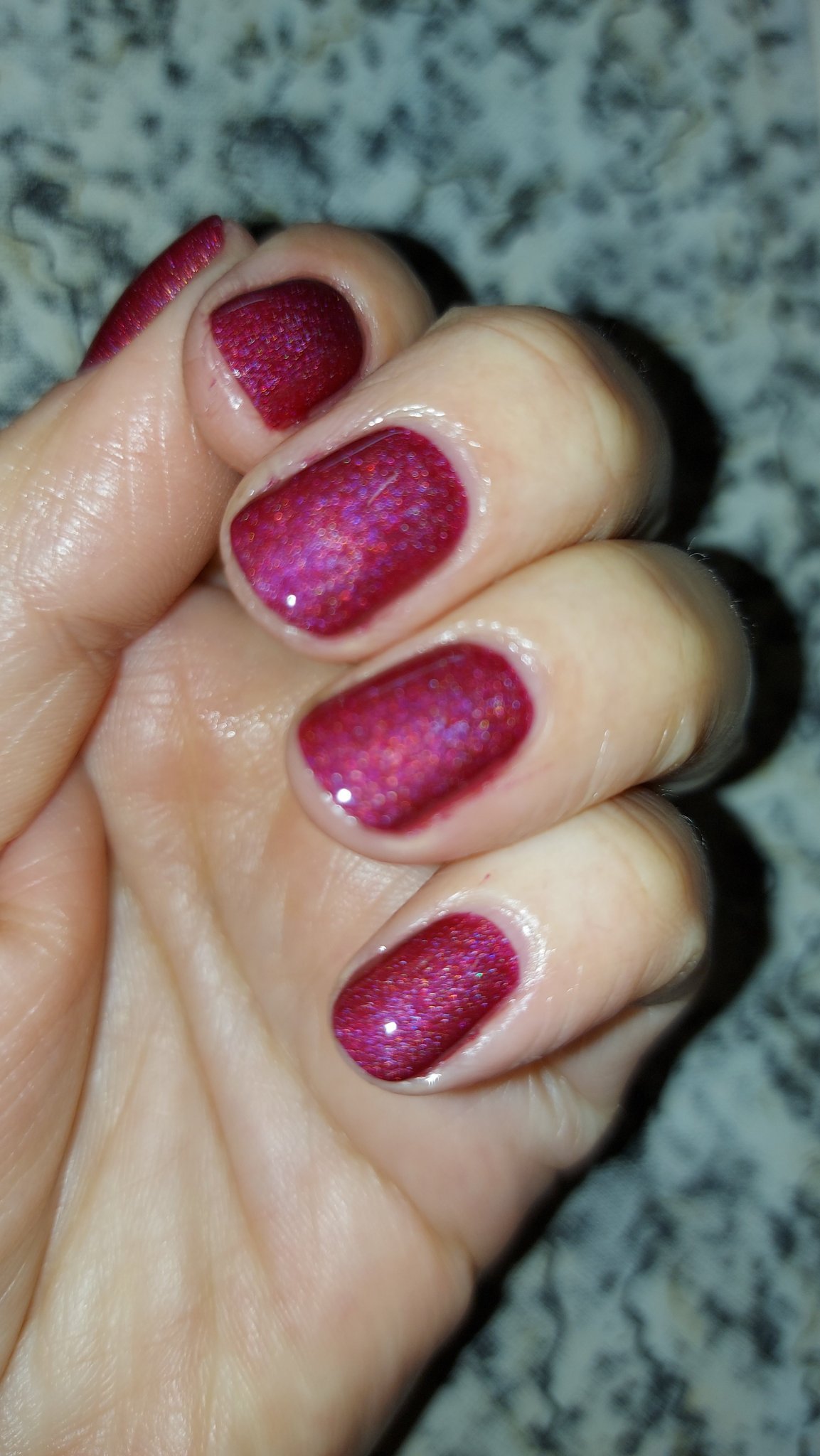 Съхне много, много бързо (май по-бързо отколкото предишните ми бутилчета), но ми остави мътно на връхчетата. За щастие, установих, че след 10-20 минутки (не помня точно, но лакът беше изсъхнал достатъчно добре) може да се махне с пръсти, с движения от основата на нокътя към върховете. Вероятно щеше да се махне и след намазване с олиото за кожички или пък дори след миене...Което ми напомня да проверя дали същото би се случило и с помътняването след Куик драй. Само не мога да разбера защо се получава само на връхчетата, като френски маникюр- малко е като термо лаковете...там където е израсналото се получава този ефект. Може пък наистина да има общо с телесната температура.