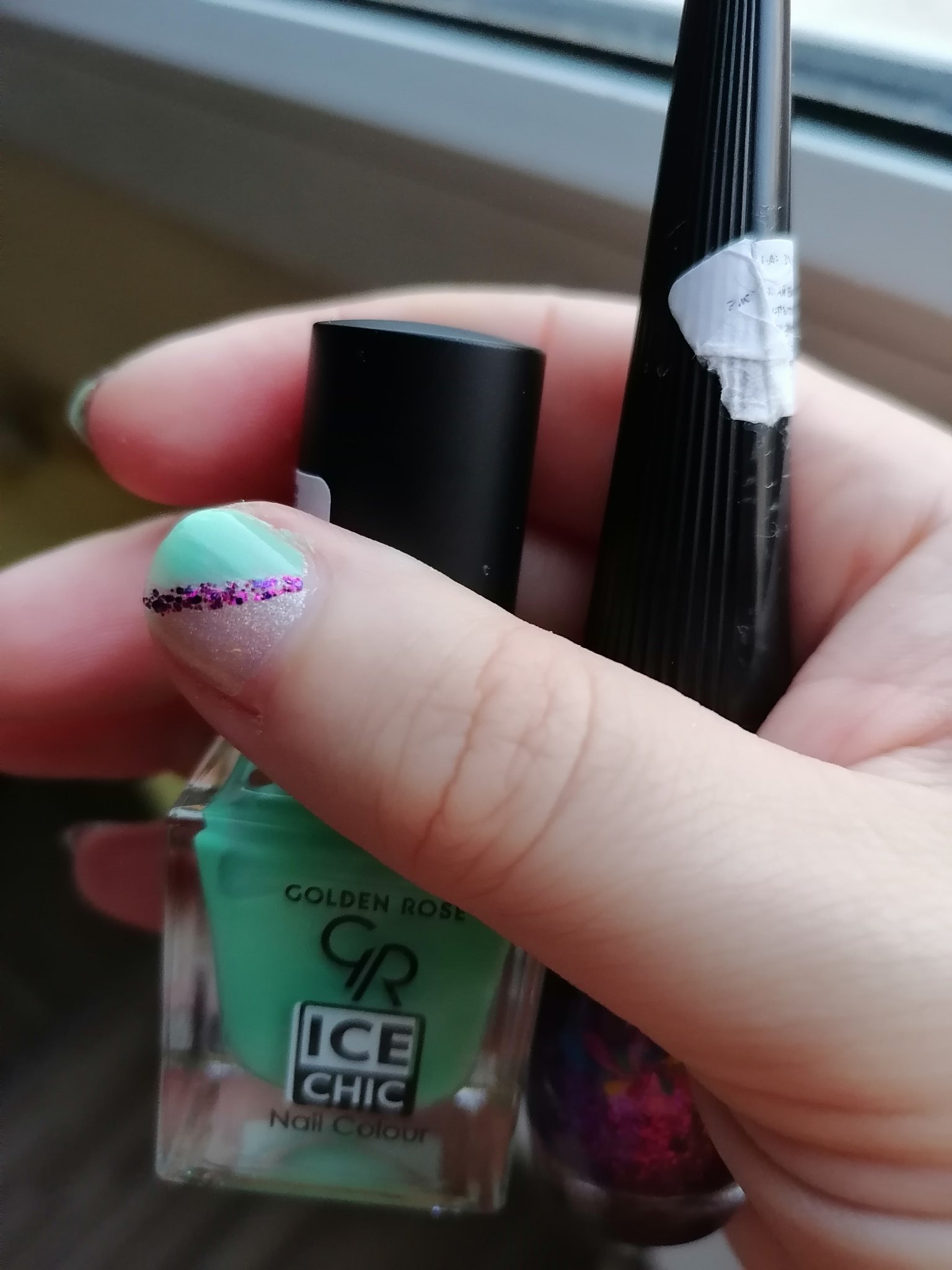 Но поне изсъхна бързо. Не съм супер доволна от овала, но с тези четки толкова- на живо е като на първите две снимки, т. е. приемливо и ще го изтърпя за няколко дни.