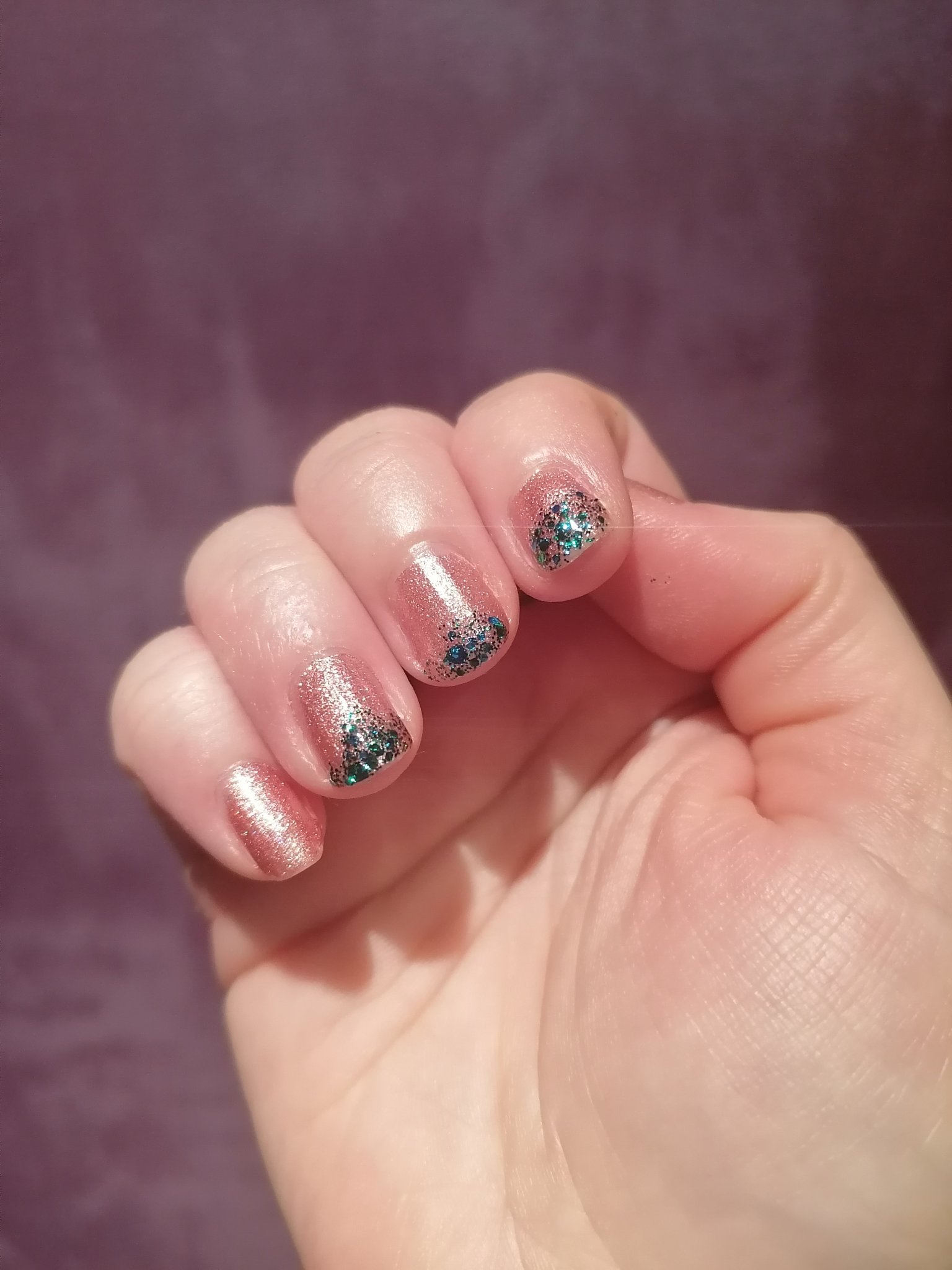 Аз пък днес съм лъскава 🙃. Уж ГР Колор експерт, пък много бавно съхнеше и наплесках брокат да замажа пораженията 😊