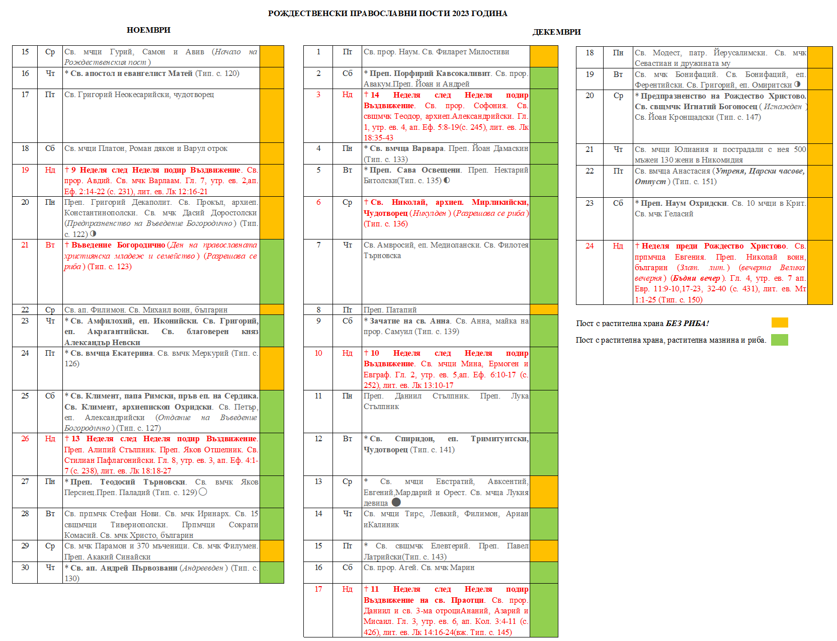 Здравейте, някой може ли да качи календар за предстоящите пости. Благодаря предварително!