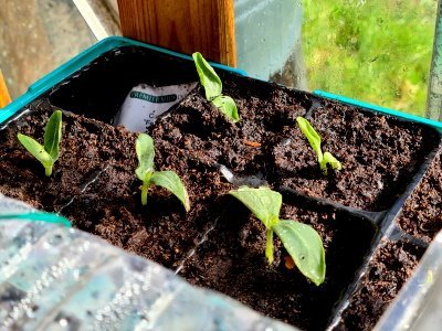 Май не ги поляхме един ден и бяха такива хилавки, килнаха се веднага. Не е загуба, миналата година подарявахме, защото вътре нямаше място за много растения, но ще ме е яд ако е бил някой интересен сорт. В парника стана 35С, обаче се чудя дали през нощта им е станало студено, някои капачета не прилягат плътно към кутийката.Краставиците обаче са супер, малките настигнаха големите и всички са малък като залък силен като великан.