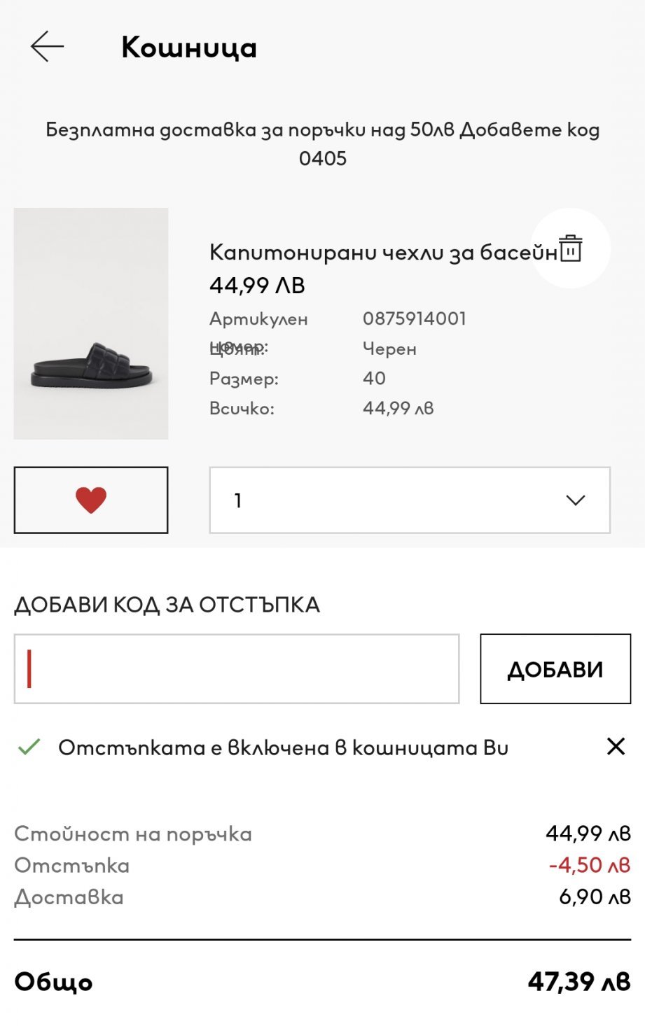 Не може да е приет кода и да начислява доставка.