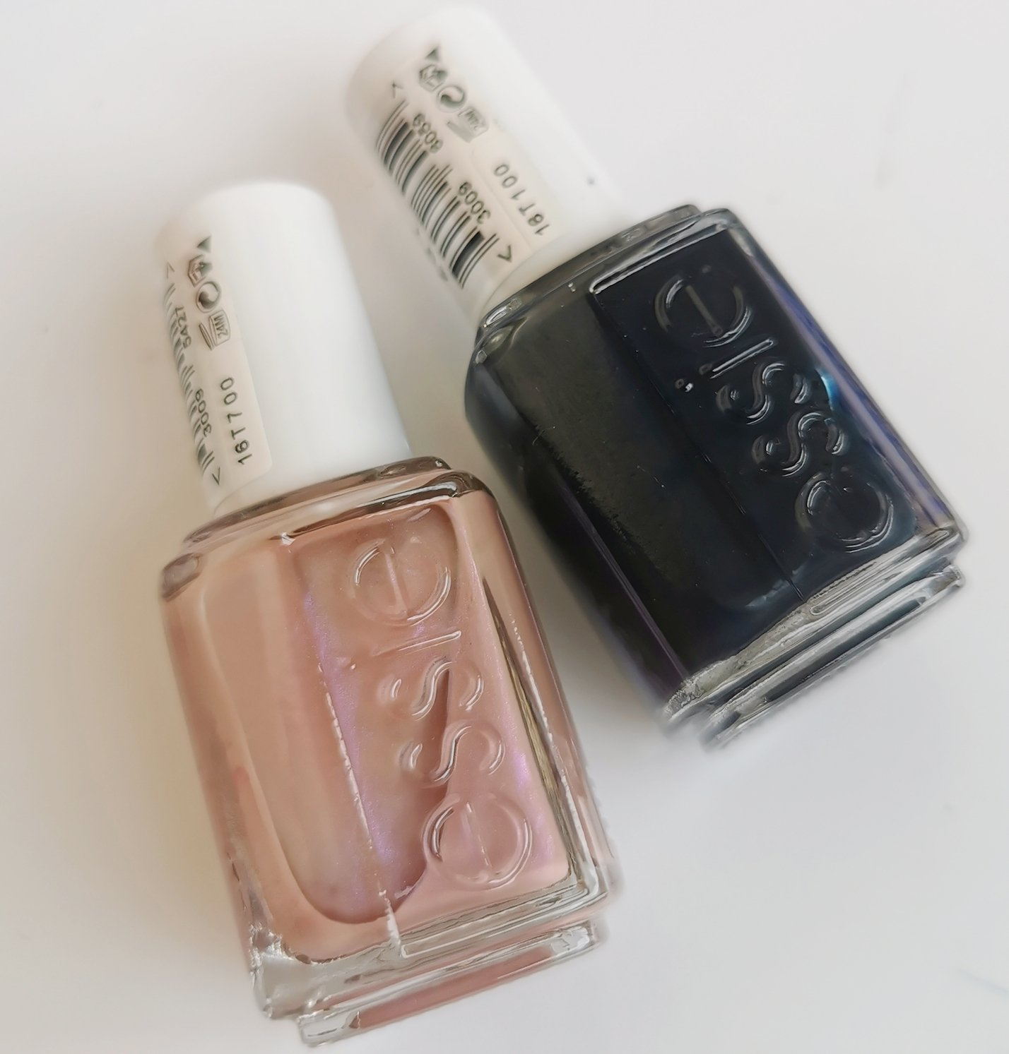 Лаковете са цветове Demure Vix (розовото) и Bobbing for baubles (тъмно синьо-сиво)