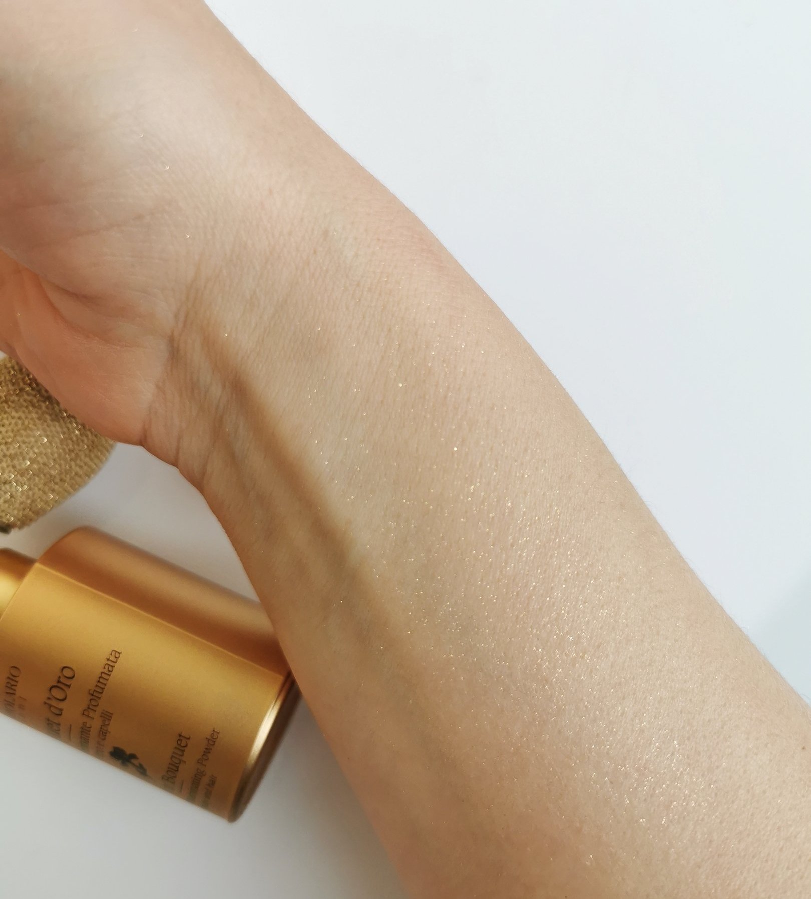 Мини аромат Bouqet d'Oro (много близък до Hypnotic Poison Dior!) с подарък лента за коса. И ароматизирана блестяща пудра за тяло от същата серия. За лято и голи крака ще е супер, a и ми хареса ретро пулверозаторчето, не че имам навик да се разхождам посипана с брокат по принцип😆