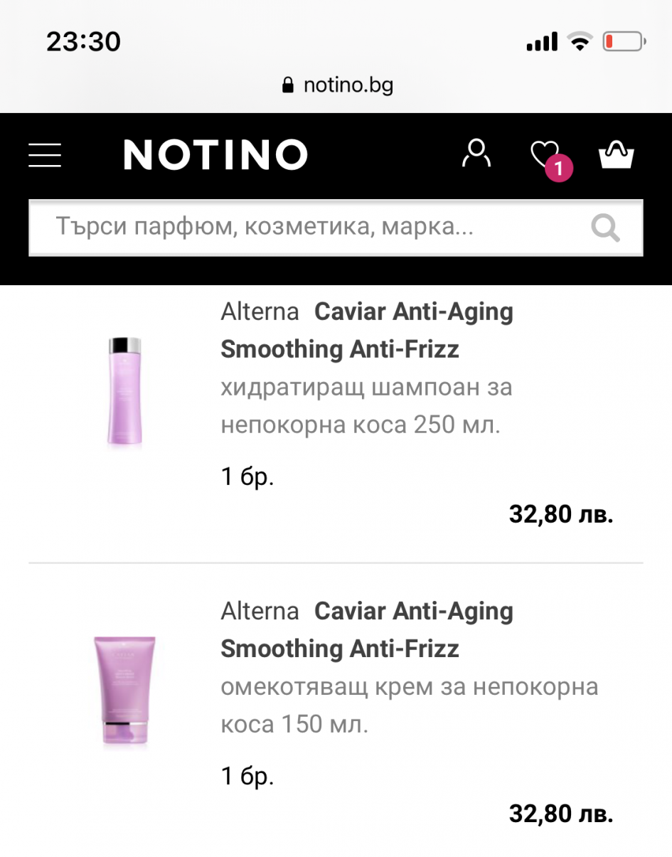 Когато нещо ми допадне на промоционална цена, но не ми се купува точно сега, но принципно ще го купя по-нататък просто го добавям в кошницата ми в единия от двата ми профила. И от двата пазарувам редовно. Продукта стои на намалената цена в кошницата, дори когато цената вече му е по-висока. Така понякога от няколко различни промоции ми стоят продукти и когато реша ги поръчвам. Сега например бях прибавила на Алтерна Анти Фриз шампоан и Крем. Преди имаха голямо намаление и цената им беше по 32 лева. Още стояха на тази цена в кошницата ми, а иначе сега цената им беше по 54 лева.