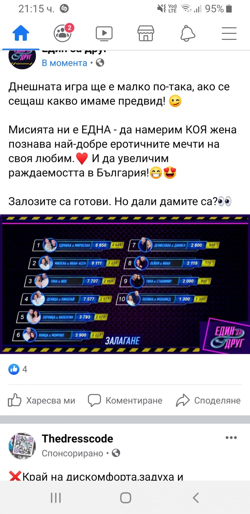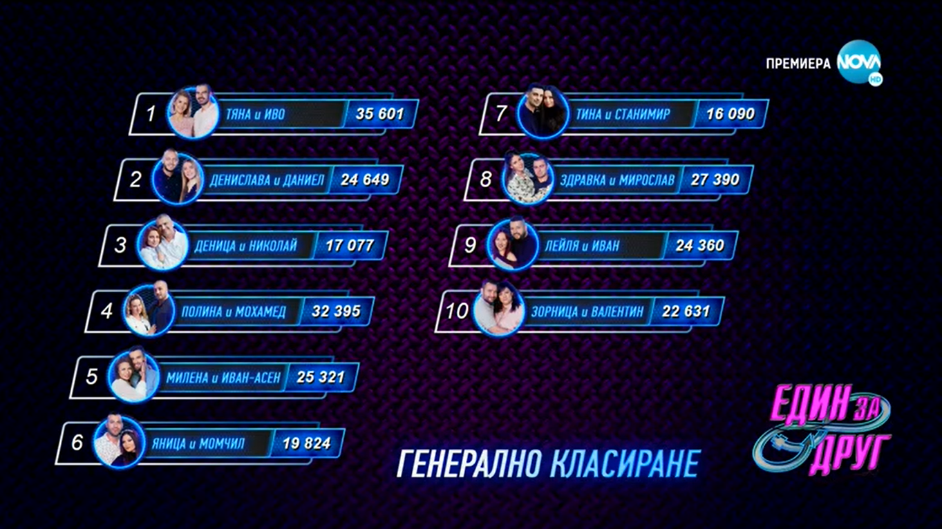 Това класиране малко ме изненадва. До миналия път Здравка и Миро бяха първи, сега в последните места. Не ми се рови назад, но мисля, че не загубиха игра миналата седмица.