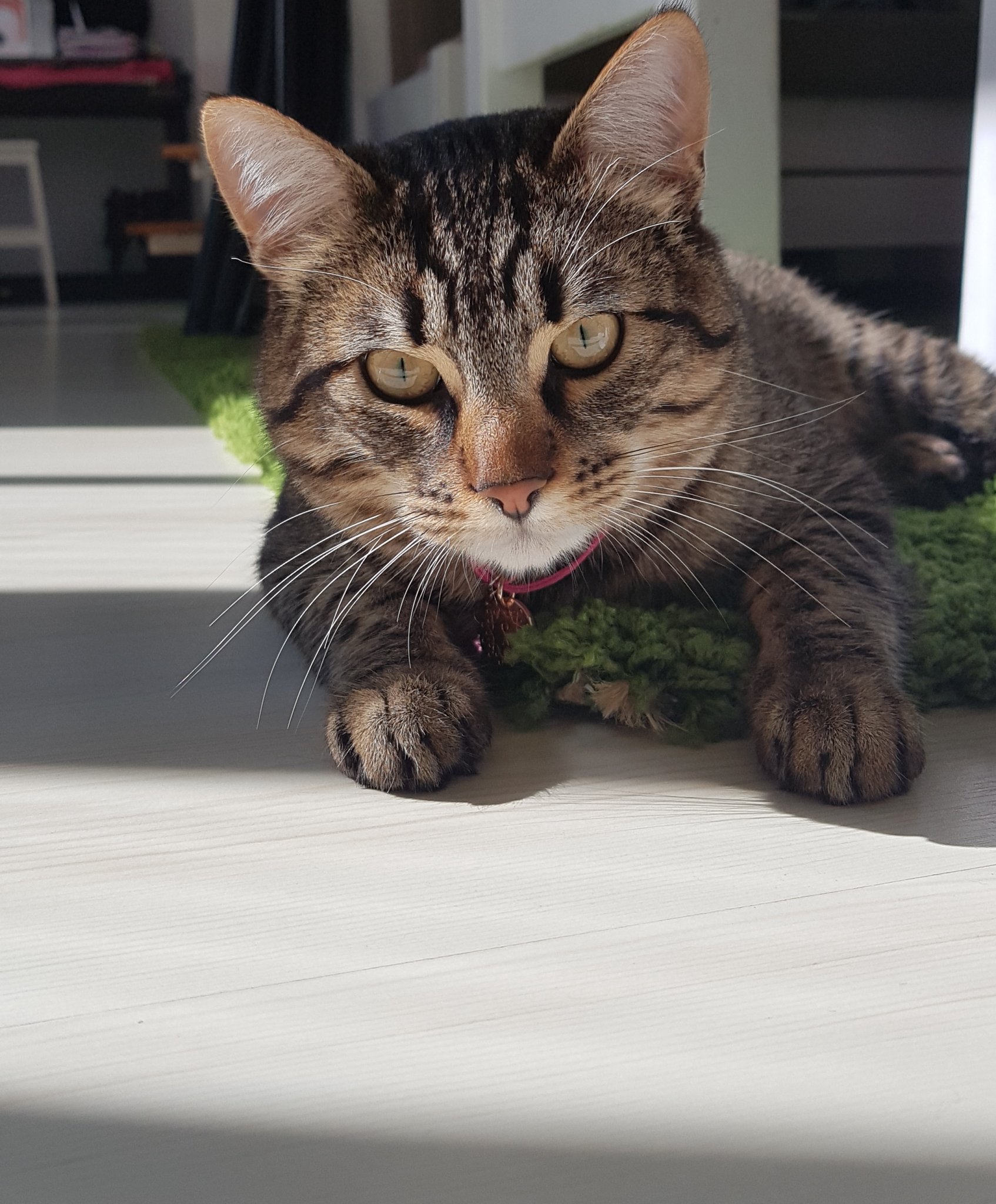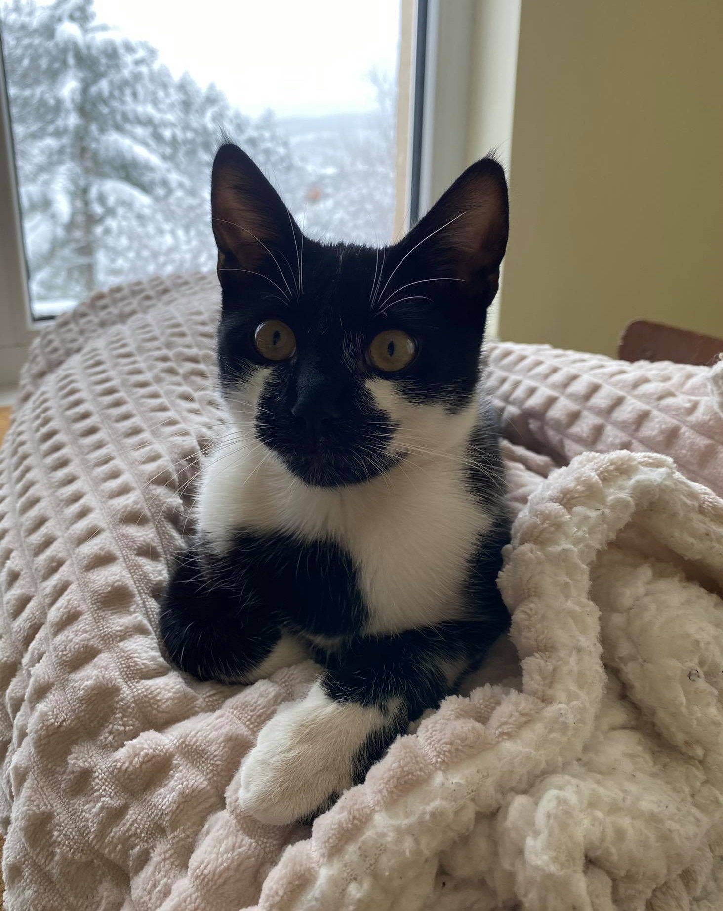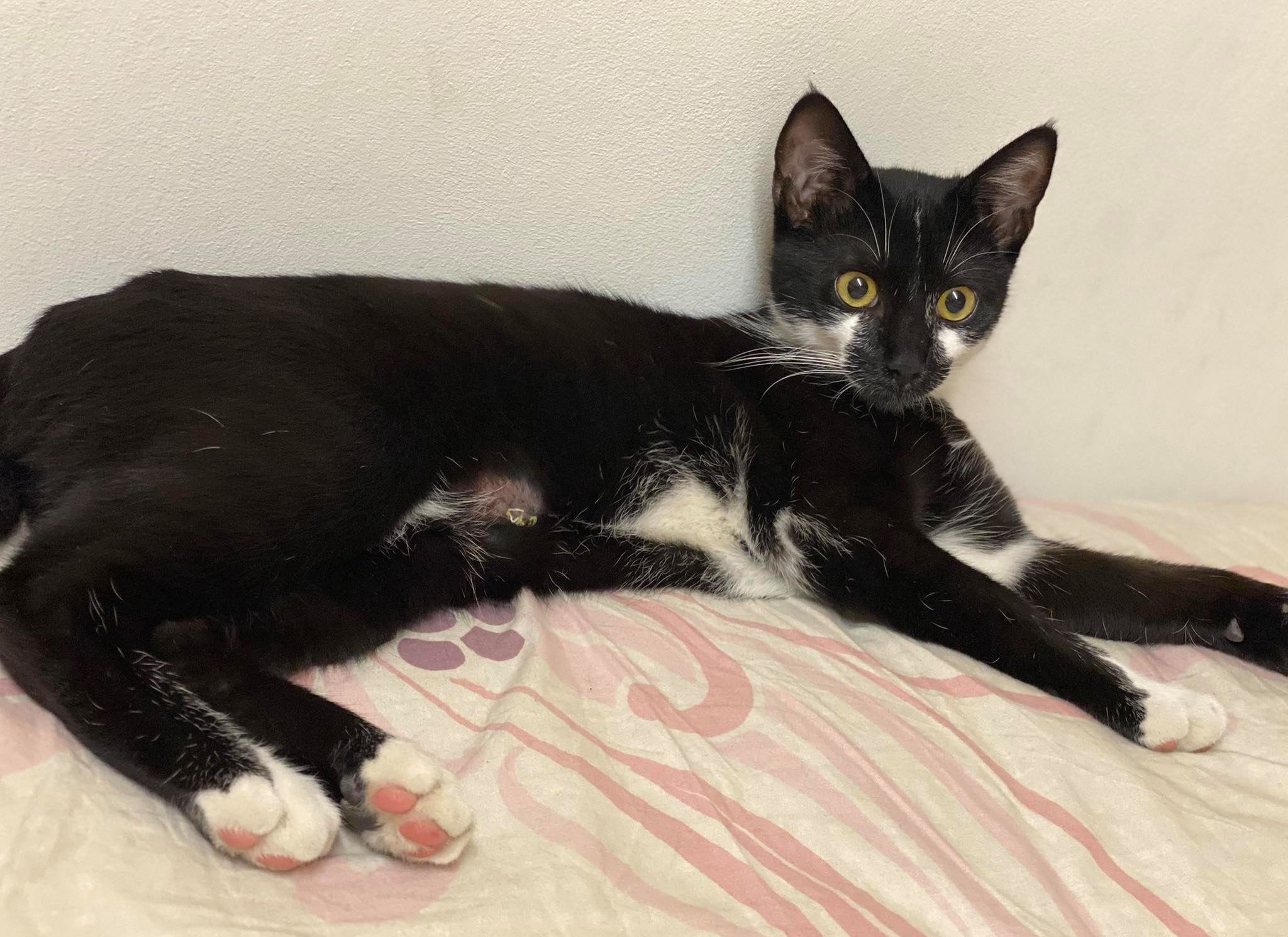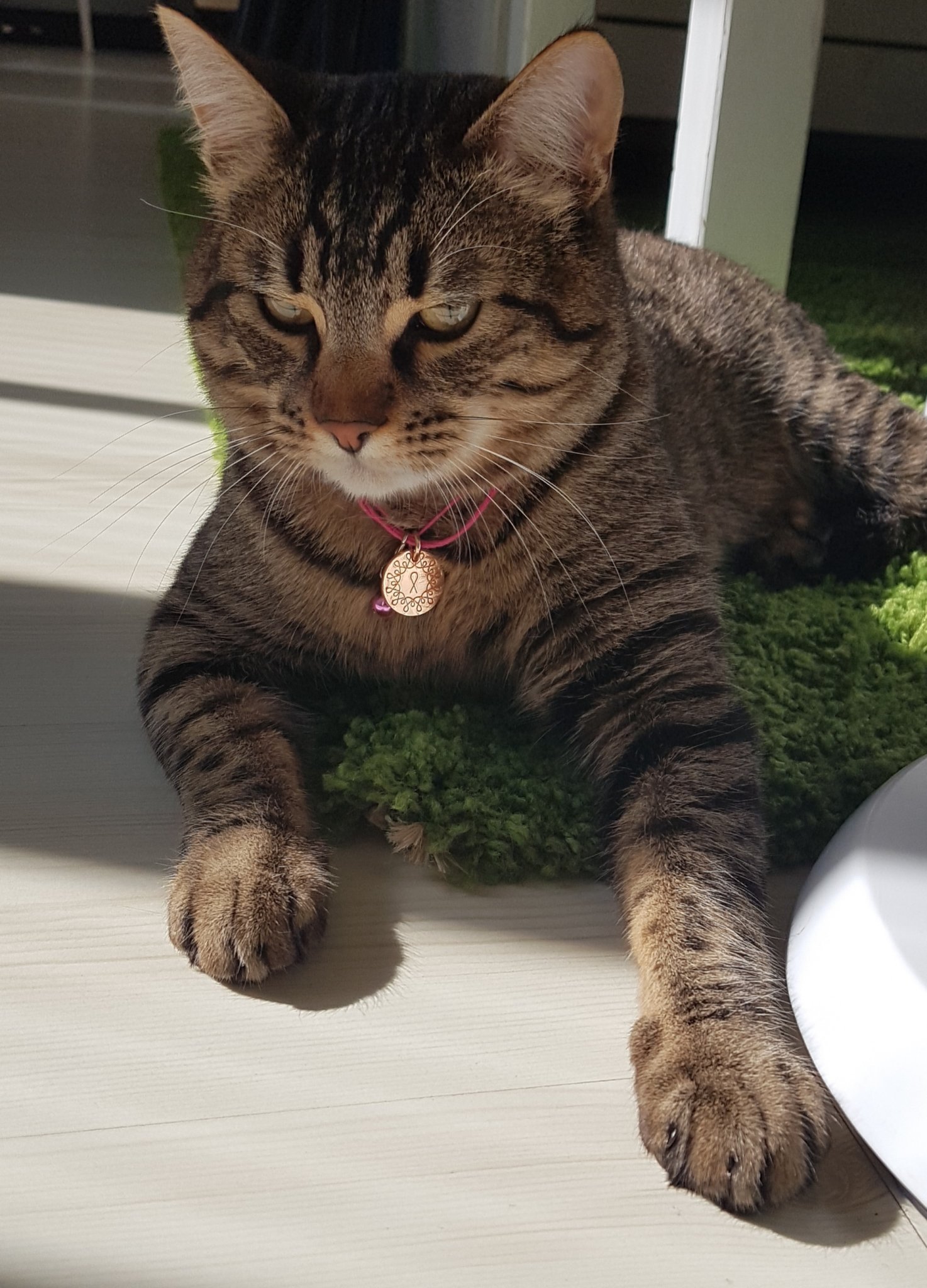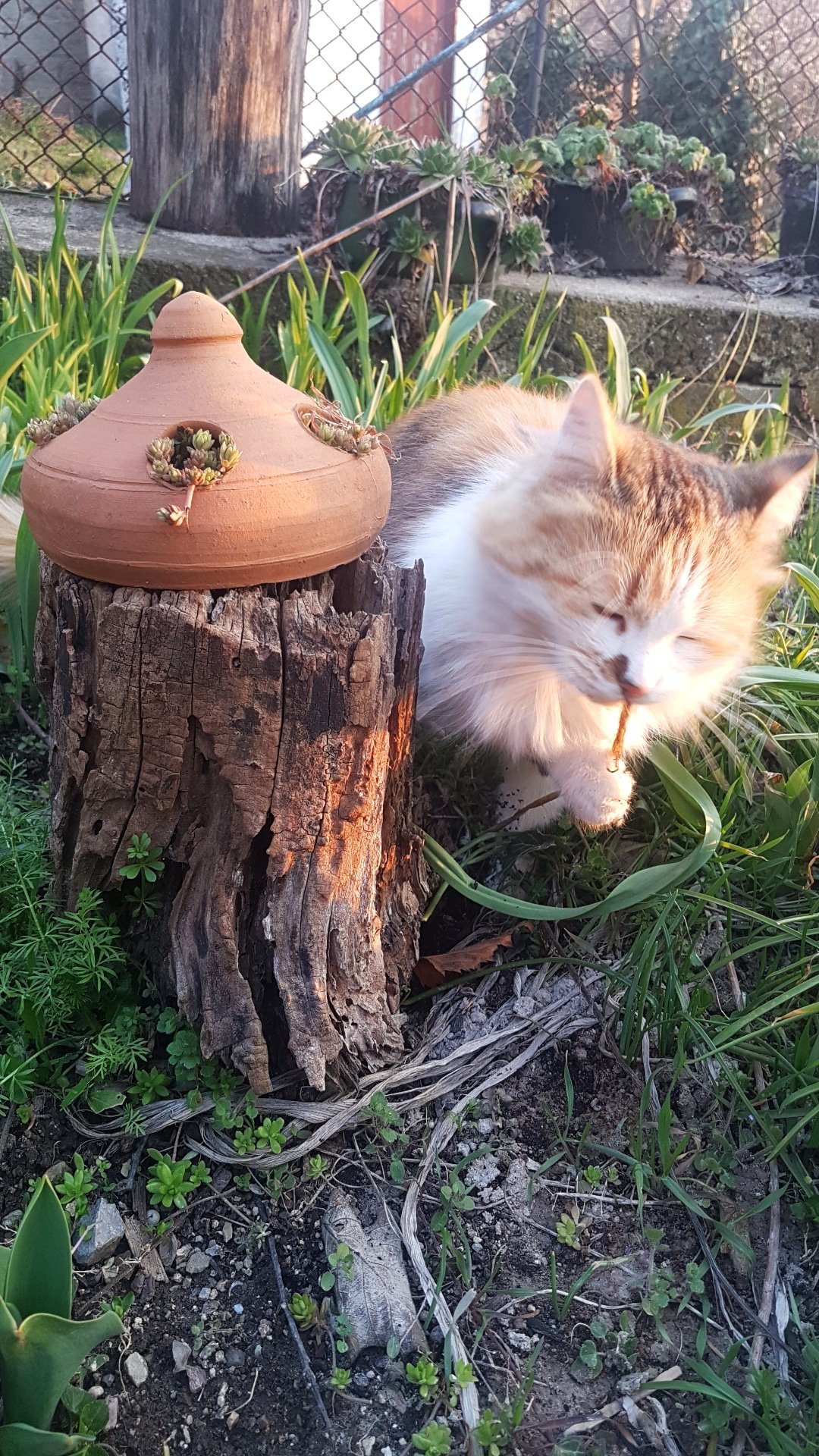 Горката Котчица, сега и с фуния. Дано по-бързо зарастне раната и да няма повече здравословни проблеми, че много преживя за краткия си живот.